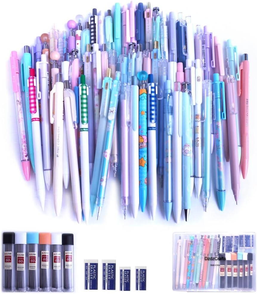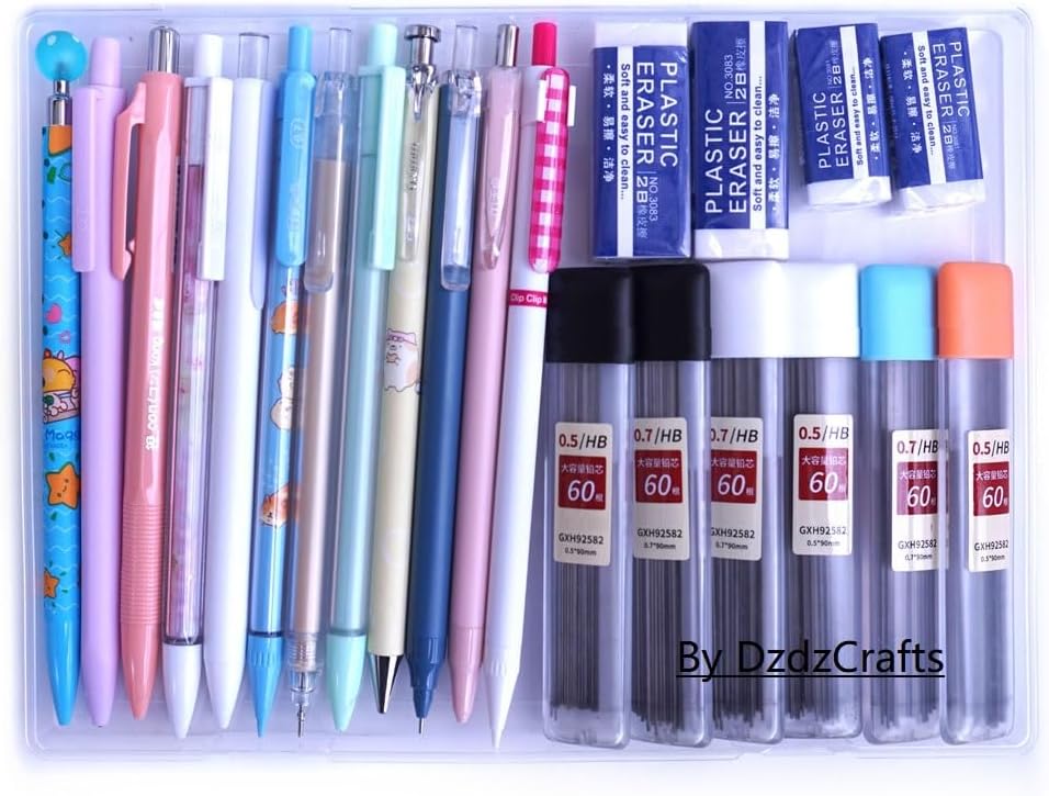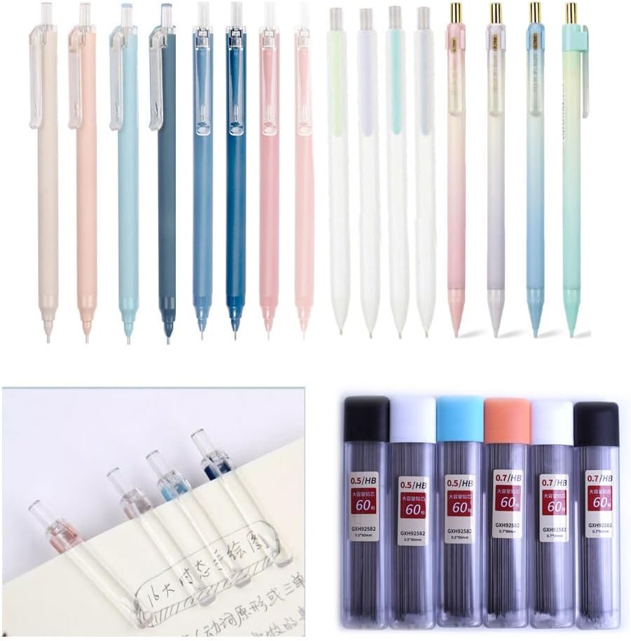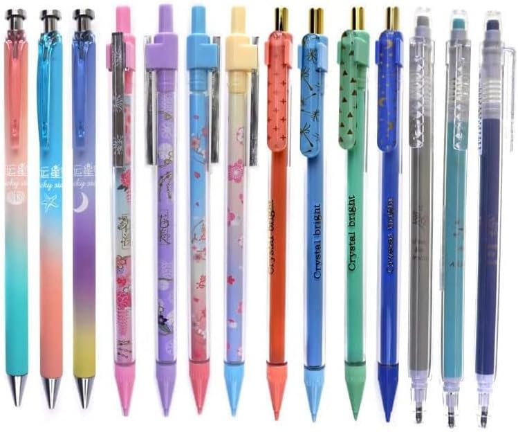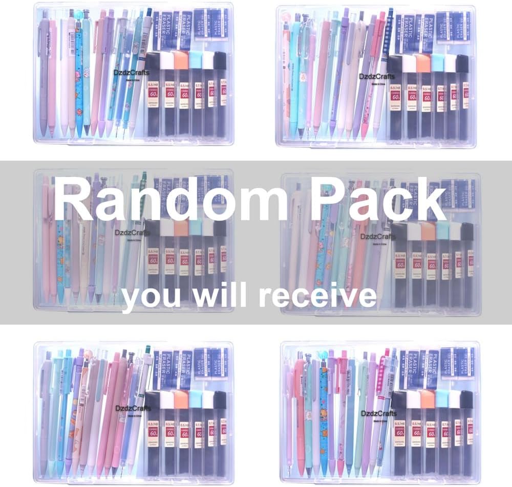 Package includes: 12pcs x mechanical pencils, 6 tubes / 360pcs pencil leads, 90mm long refills. And 4 Erasers.