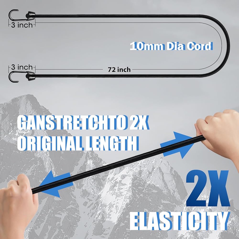 • شديد التحمل، مع خطافات معدنية قوية وسلك بنجي بقطر 10 مم، بسعة تحميل أعلى من 80 رطل.