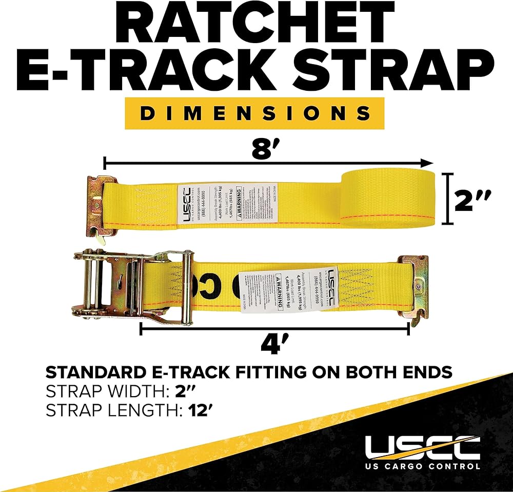 أشرطة ETRACK متينة - تحتوي أحزمة السقاطة E-Track على حزام بوليستر من الدرجة الصناعية يتمتع بقوة كسر تصل إلى 6000 رطل، وآليات سقاطة تجارية عالية التحمل مصنوعة من معدن أكثر سمكًا لأشرطة شحن ذات جودة احترافية.