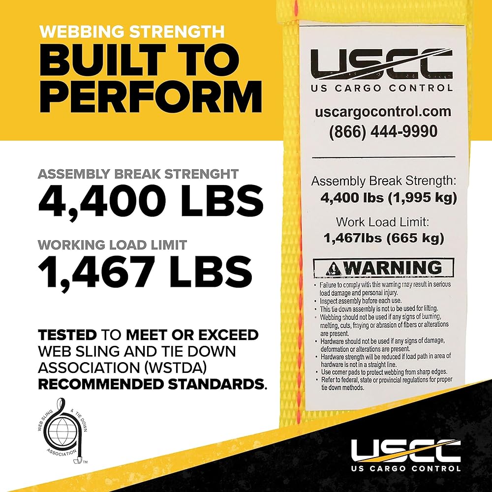 المواصفات - (8) أشرطة سقاطة مقاس 2 × 12 قدم | (2) خطافات تركيب زنبركية مع كل حزام ربط | حد حمل العمل: 1,467 رطلاً | المادة: بوليستر | العرض: 2 بوصة | طول النهاية الثابتة: 4 أقدام | طول النهاية السائبة: 8 أقدام| وزن المنتج: 2 رطل | اللون الأصفر