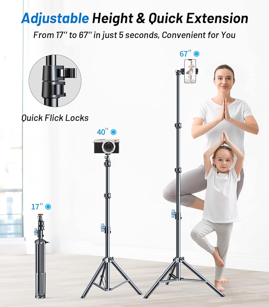 [𝟲𝟳'' 𝗧𝗮𝗹𝗹 𝗧𝗿𝗶𝗽𝗼𝗱 𝘁𝗼 𝗖𝗮𝗽𝘁𝘂𝗿𝗲 𝗠𝗼𝗿𝗲] ما هو أبرز ما يميز حامل ثلاثي القوائم طويل الترقية؟ بالمقارنة مع الحامل ثلاثي القوائم مقاس 62 بوصة لجهاز iPhone، يتيح لك الحامل ثلاثي القوائم مقاس 67 بوصة وضع هاتفك أعلى، مما يسهل عليك التقاط لقطات لكامل الجسم، بقدر ما تستطيع العين رؤيته، ويمكن للحامل ثلاثي القوائم التسجيل. عند التقاط صور جماعية، يمكنك حشر الجميع، مما يقلل من الإحراج الناتج عن الاستمرار في ضبط الزاوية لالتقاط الصور للجميع. احصل على حامل ثلاثي القوائم للهاتف VICSEED وكن مصورًا فوتوغرافيًا محترفًا في وقت قصير