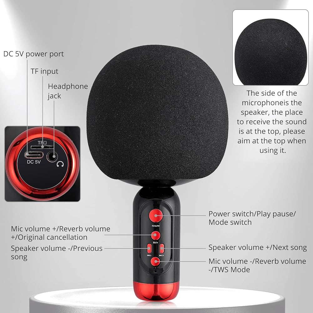 【ميكروفون كاريوكي عالي الدقة 】 ميكروفون كاريوكي بلوتوث مع مكبر صوت، تصميم فريد، مكبر صوت مدمج عالي الوضوح 57 مم 4Ω 5 وات، يوفر صوتًا أعلى وجودة صوت أفضل. مثالي للعائلة والحفلات والكاريوكي وأعياد الميلاد وعيد الحب والكريسماس والتخرج والاحتفال بالصداقة وغير ذلك الكثير.