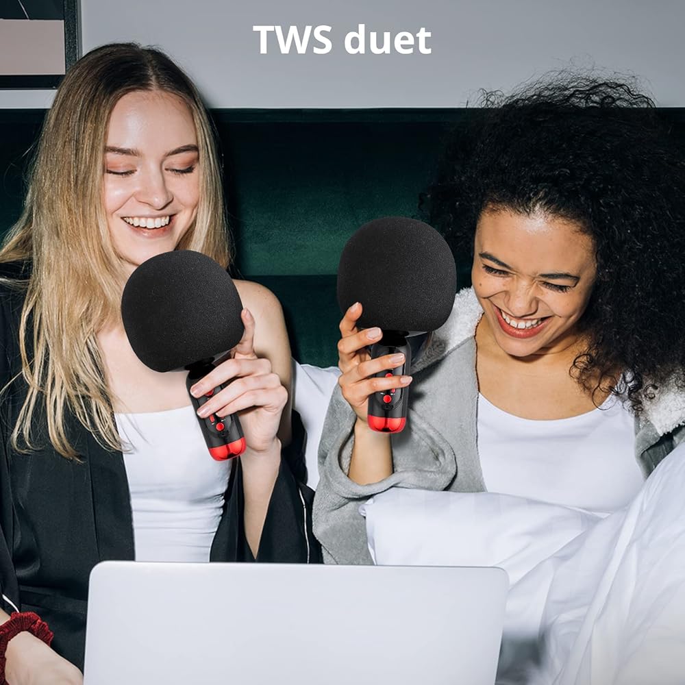 【ميكروفون متعدد الوظائف】يعتمد ميكروفون كاريوكي بلوتوث تقنية البلوتوث 5.0 ويمكنه التسجيل في هاتفك عبر كابل صوت 3.5 ملم. لديها وظيفة إلغاء الصوت الأصلي بمفتاح واحد، وتدعم بطاقة TF كمكبر صوت لتشغيل الأغاني؛ يدعم TWS Duet، والذي يمكن إقرانه بميكروفونين في نفس الوقت.