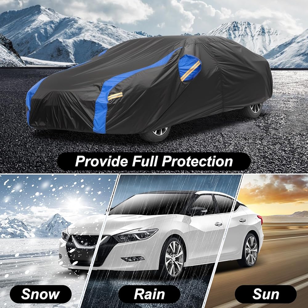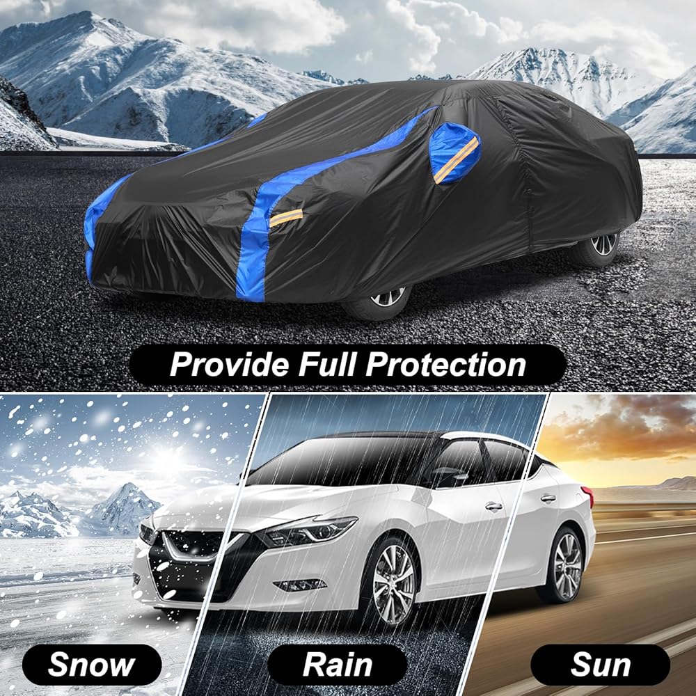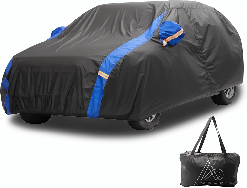 【حماية شاملة】 توفر أغطية السيارات AMBARI لجميع الأحوال الجوية للسيارات حماية شاملة للحفاظ على سيارتك آمنة من الأشعة فوق البنفسجية والغبار والمطر والثلج والصقيع والخدوش.