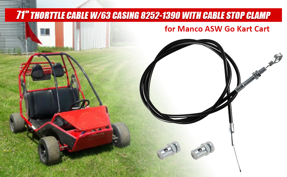 كابل Thorttle مقاس 71 بوصة مع غلاف 63 8252-1390 مع مشبك إيقاف الكابل لعربة Manco ASW Go Kart