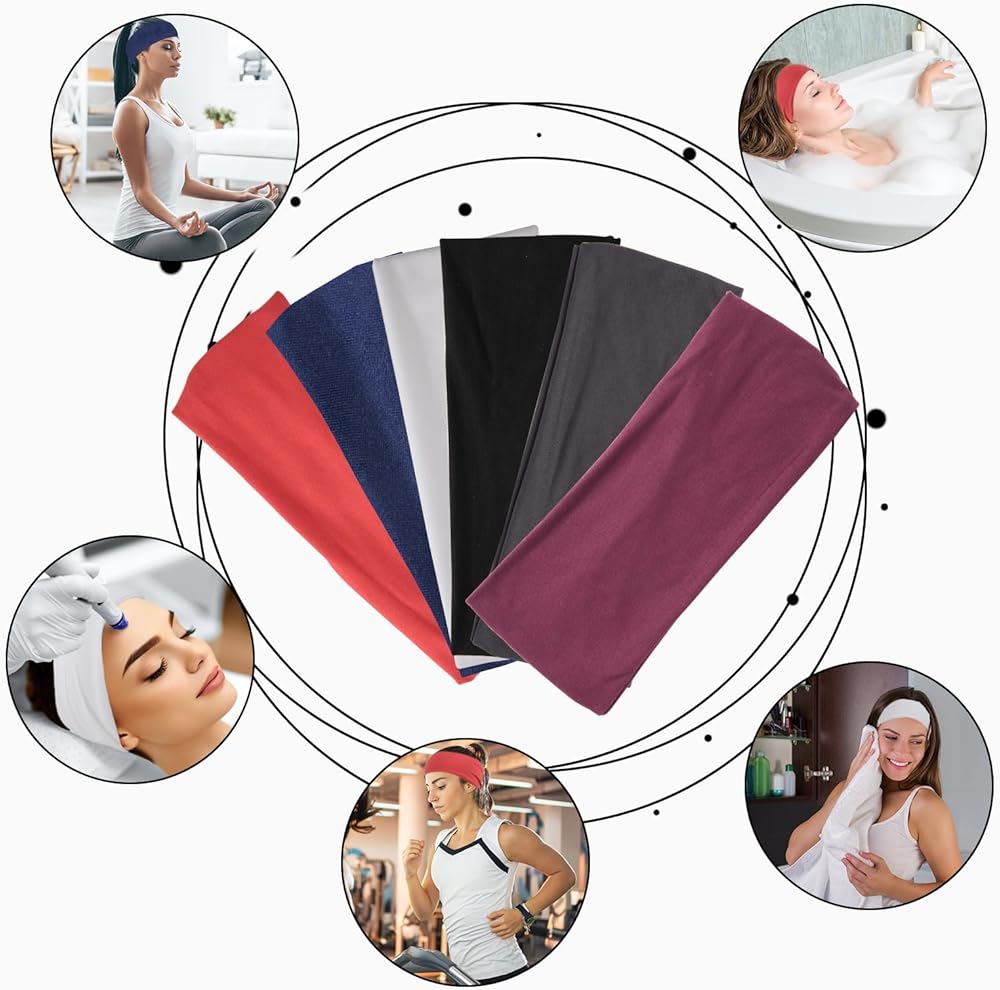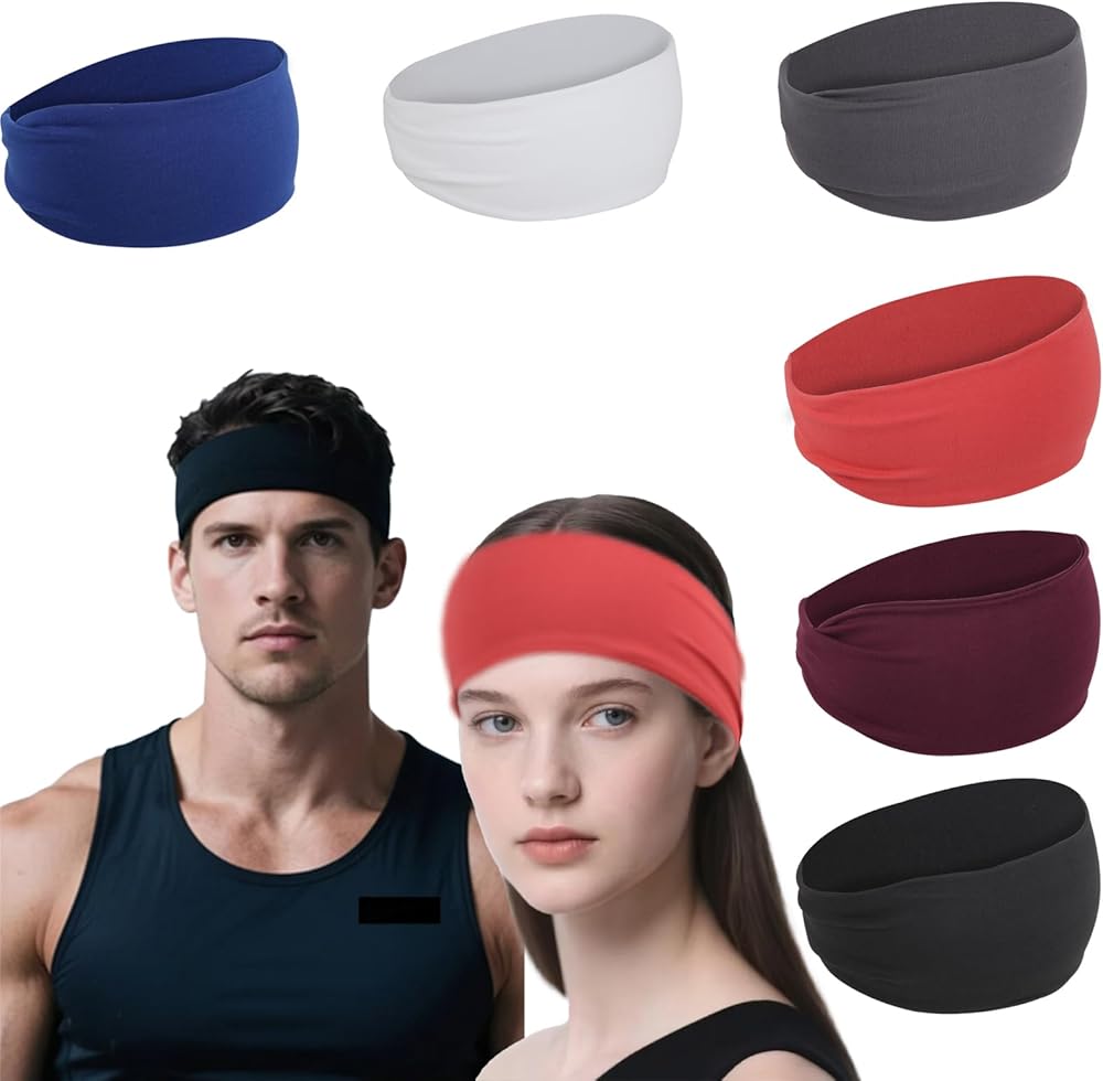عصابات رأس رياضية للرجال والنساء، عصابة رأس للتمرين ماصة للرطوبة، عصابات رأس للجري وركوب الدراجات وكرة القدم واليوجا وعصابة شعر للنساء والرجال 6 قطع