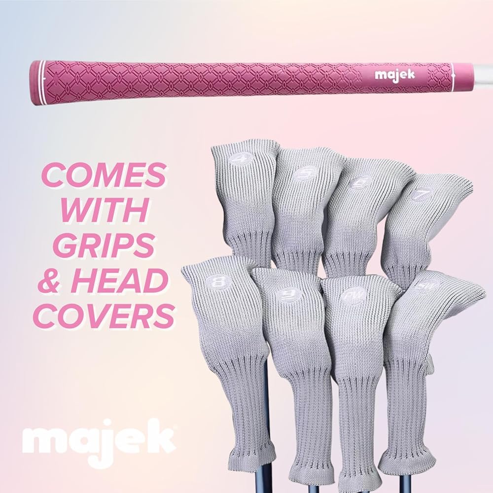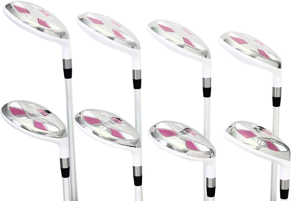مجموعة مكاوي الجولف الهجينة للسيدات من Majek White Pearl كبار النساء الجديدات أفضل جميع الهجين الحقيقي وخفيف الوزن للغاية والمسامحة للمرأة، تتضمن الحزمة الكاملة 4 5 6 7 8 9 PW SW All Lady Flex Utility Clubs