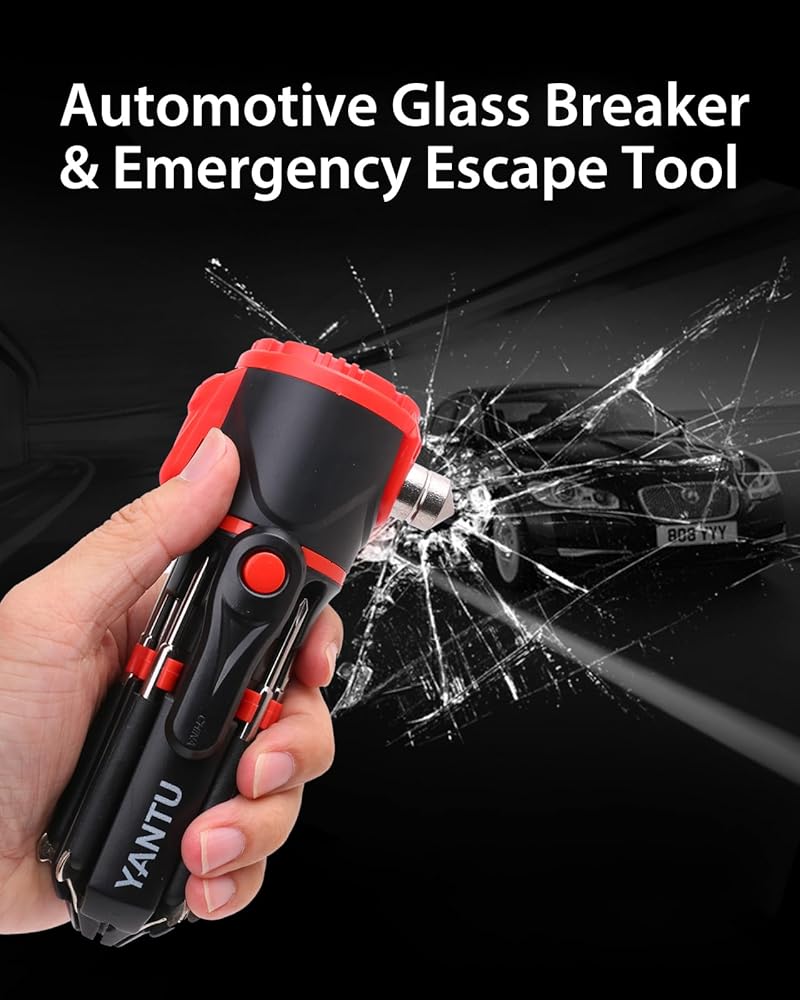 قاطع النوافذ وقاطع حزام الأمان من YANTU، كاسر زجاج السيارة، رؤوس مطرقة فولاذية التنجستن مزدوجة الجوانب، مطرقة أمان السيارة 2 في 1، أداة السيارات الضرورية للطوارئ