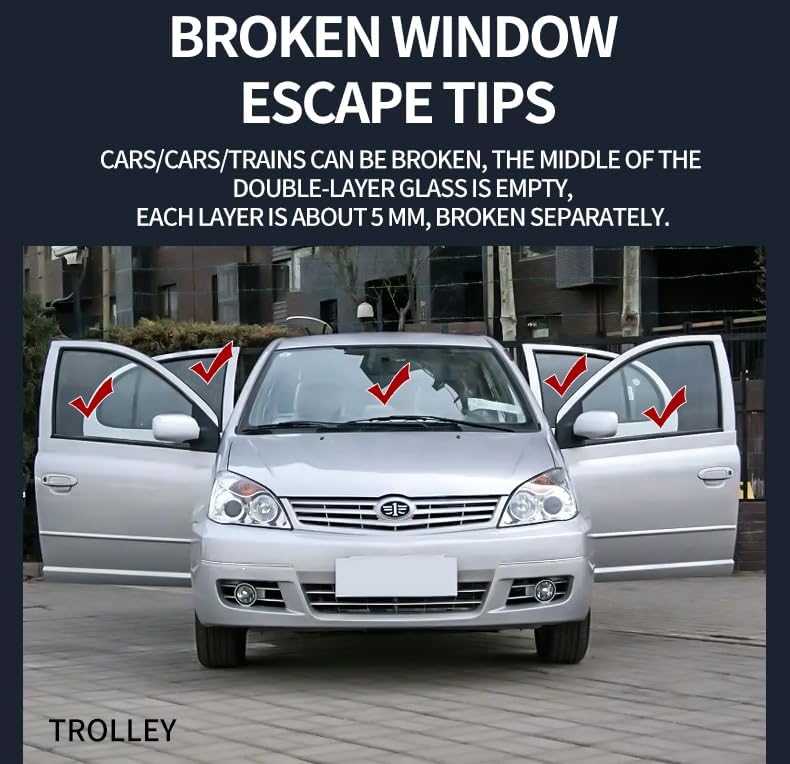 【Please Note】This car window breaker bracelet is not suitable for car windshields. It is only effective on tempered glass commonly used for side windows.