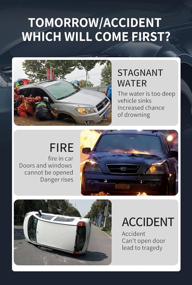 【Essential Car Escape Tools】This window breaker bracelet is a wrist strap window breaker. This glass breaker can help you effectively break the reinforced safety glass of car side windows in emergency situations such as traffic accidents, vehicle fires, cars falling into water, electronic failures, etc.