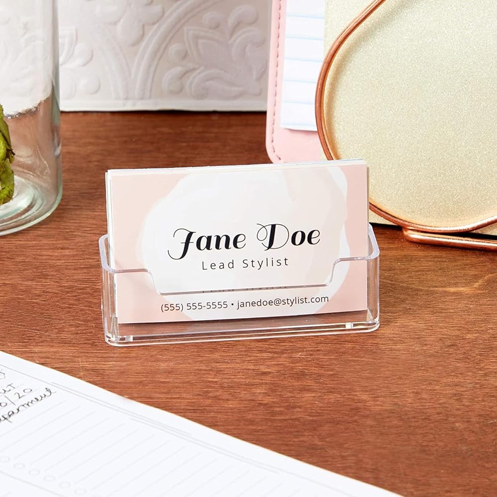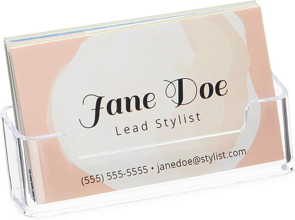 Business Supplies: The card display stand has a single compartment design that ensures the front of the business card will easily be seen by incoming customers and clients; the clear plastic holder will effortlessly complement your existing office decor
