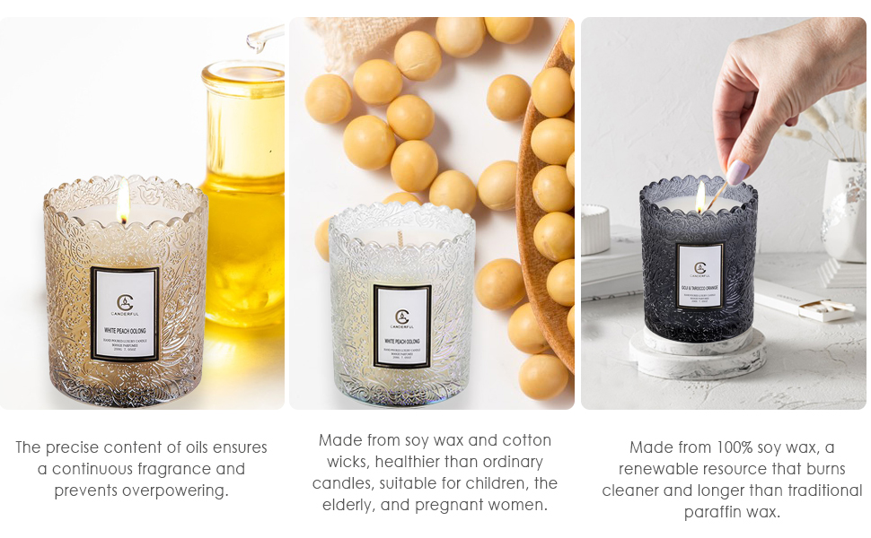شموع الصويا المعطرة القوية: جرب التحول الطبيعي لرائحة منزلك مع الشموع المعطرة الفاخرة، المصنوعة من الزيوت العطرية الطبيعية وشمع الصويا الطبيعي بنسبة 100%.