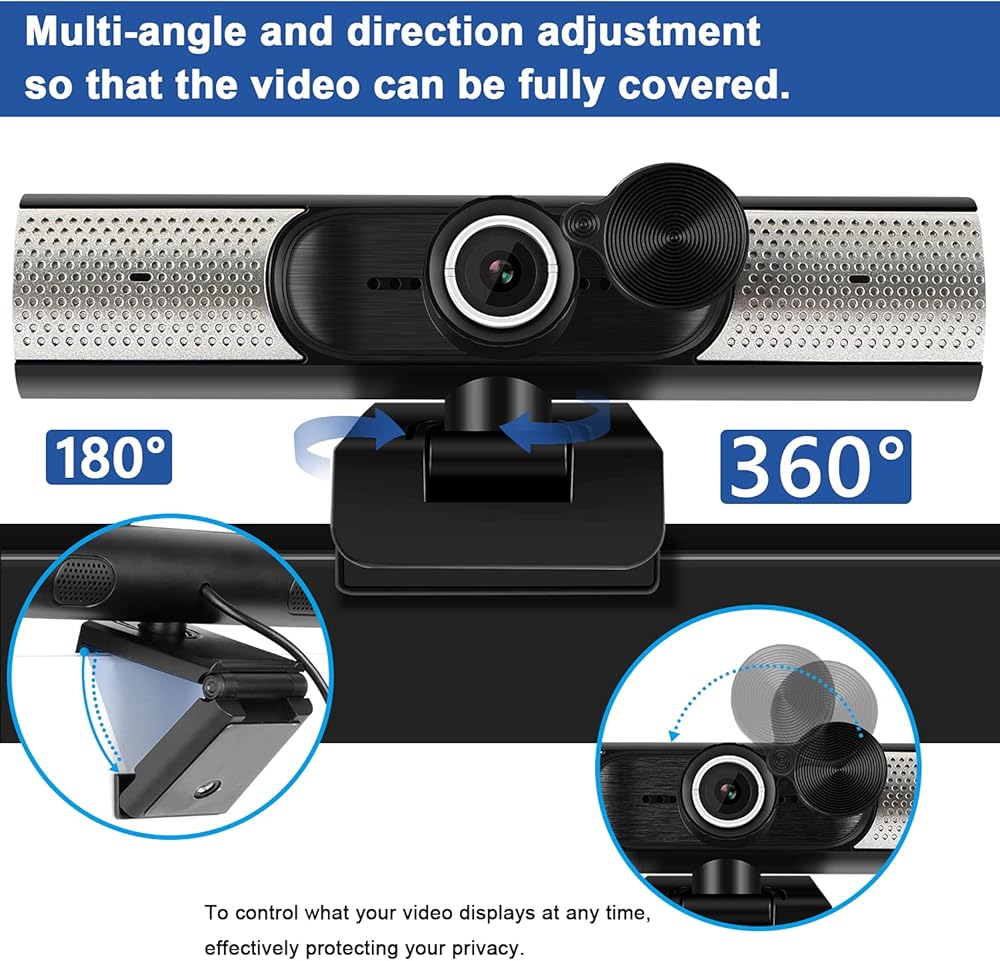【كاميرا ويب مع ميكروفون ومكبرات صوت】: التصميم الفريد لهذه الكاميرا المدمج في ميكروفون ستيريو رقمي ومكبرات صوت مزدوجة، وظيفة تقليل الضوضاء التلقائية، تجعل الصوت أكثر نقاءً ووضوحًا، يمكنك سماع صوتك حتى على مسافة 10 أقدام. تتميز مكبرات الصوت بأنها واضحة وخالية من الضوضاء، وتعكس بشكل مثالي مجموعة متنوعة من الترددات العالية والمنخفضة. مصمم لمكالمات الفيديو والتسجيلات والاجتماعات والألعاب ذات الجودة الاحترافية.