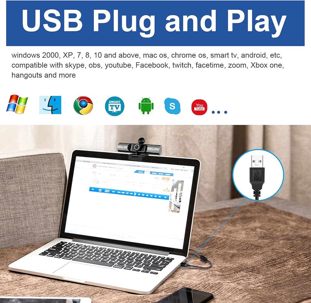 【مجموعة واسعة جدًا من سيناريوهات التطبيق】: تتوافق كاميرا الويب USB هذه على نطاق واسع مع أنظمة التشغيل windows 2000 وXP و7 و8 و10 وأحدث، وmac os، وchrome os، والتليفزيون الذكي، وAndroid وأنظمة التشغيل الأخرى، وتستخدم على نطاق واسع في سكايب و obs و youtube و Facebook و twitch و Facetime و Zoom و Xbox One و Hangouts والمزيد.