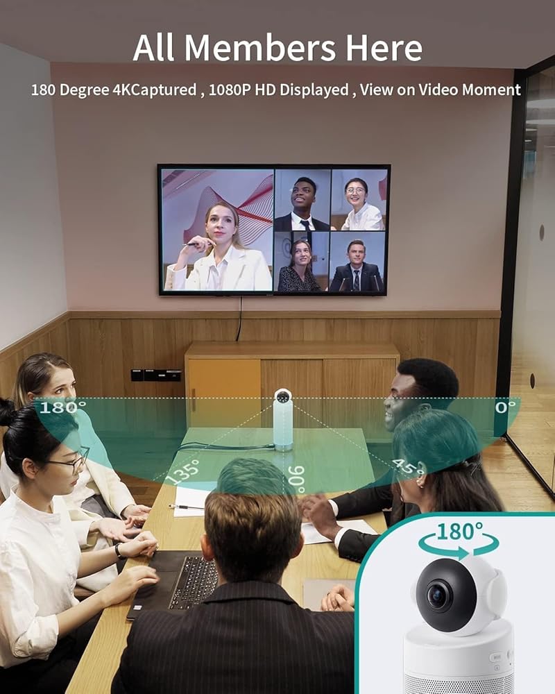 ✅ 𝟭𝟴𝟬° 𝗪𝗶𝗱𝗲 𝗔𝗻𝗴𝗹𝗲 & 𝗛𝗶𝗴𝗵-𝗤𝘂𝗮𝗹𝗶𝘁𝘆 𝗩𝗶𝗲𝘄 - توفر كاميرا المؤتمر 1 مؤتمرات فيديو بدقة 080P/720P فائقة الدقة مع تفاصيل استثنائية. ويضمن مجال الرؤية الواسع للغاية الذي يبلغ 180 درجة رؤية واضحة لجميع المشاركين.