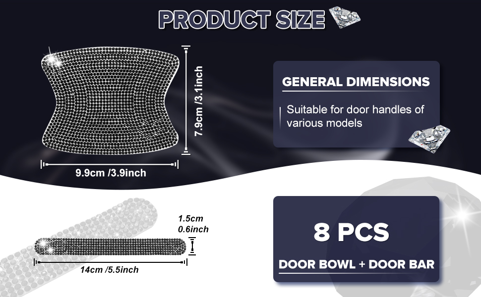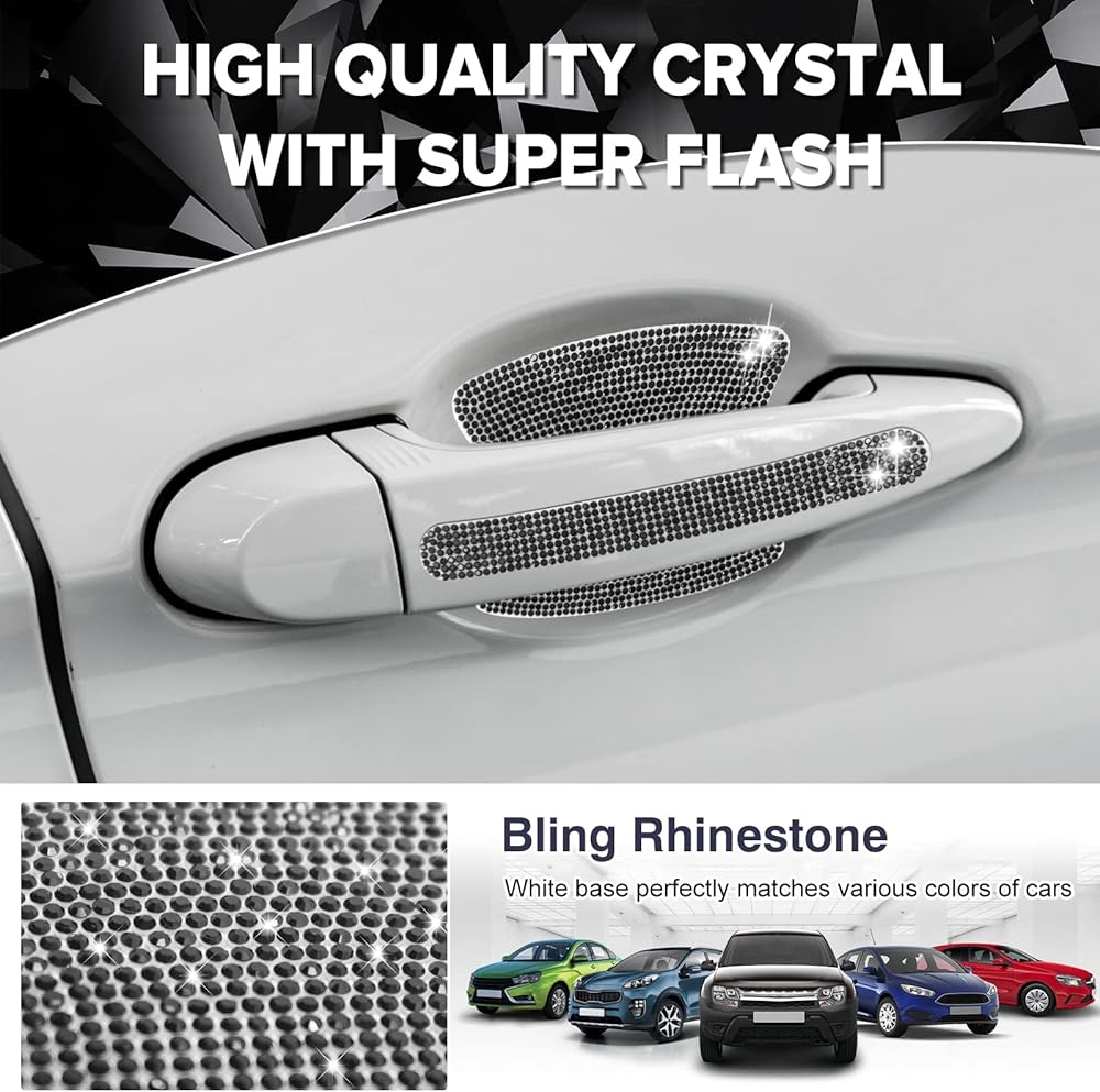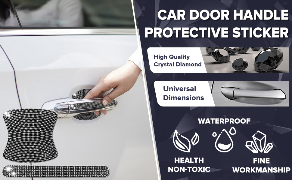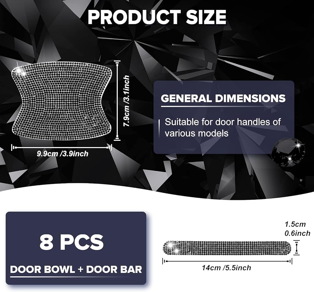 【إكسسوارات السيارة اللامعة】 مصنوعة من أسطح متعددة القطع وأحجار الراين عالية الكثافة، ستمنحك ملصقات مقبض باب السيارة المصنوعة من حجر الراين المتلألئ تأثيرًا لامعًا على سيارتك! هذه الملصقات قادرة على تقديم تأثيرات لامعة مختلفة تحت أضواء مختلفة، مما يجعل السيارة مميزة. يمكن أيضًا استخدام واقي الخدش لمقبض الباب هذا كتحذير من تأثير الانعكاس الليلي لضمان سلامة القيادة.