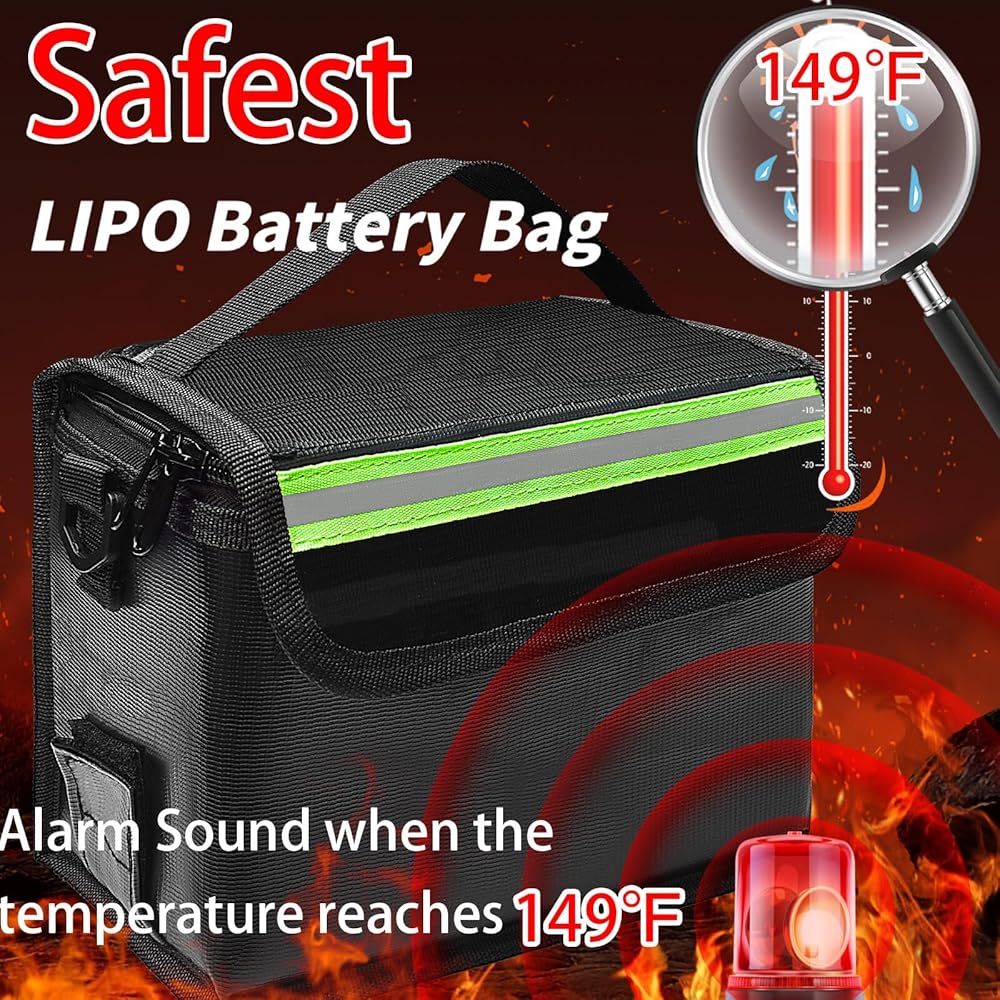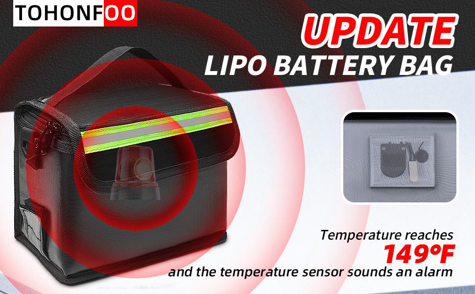 حقيبة بطارية ليبو الأكثر أمانًا مع منبه: 🔥 تم تصميم حقيبة بطارية ليبو الآمنة باستخدام مستشعر درجة الحرارة وسوف تصدر إنذارًا إذا وصلت درجة حرارة حقيبة بطارية ليبو إلى 149 درجة فهرنهايت. من الأفضل حماية حزم البطاريات والارتقاء بالأمان إلى المستوى التالي.