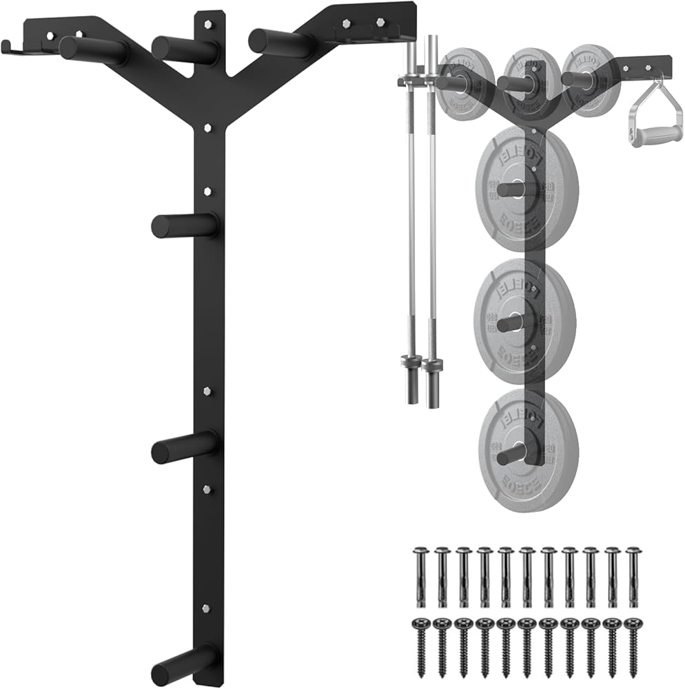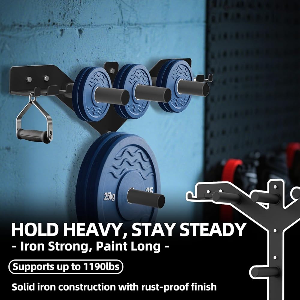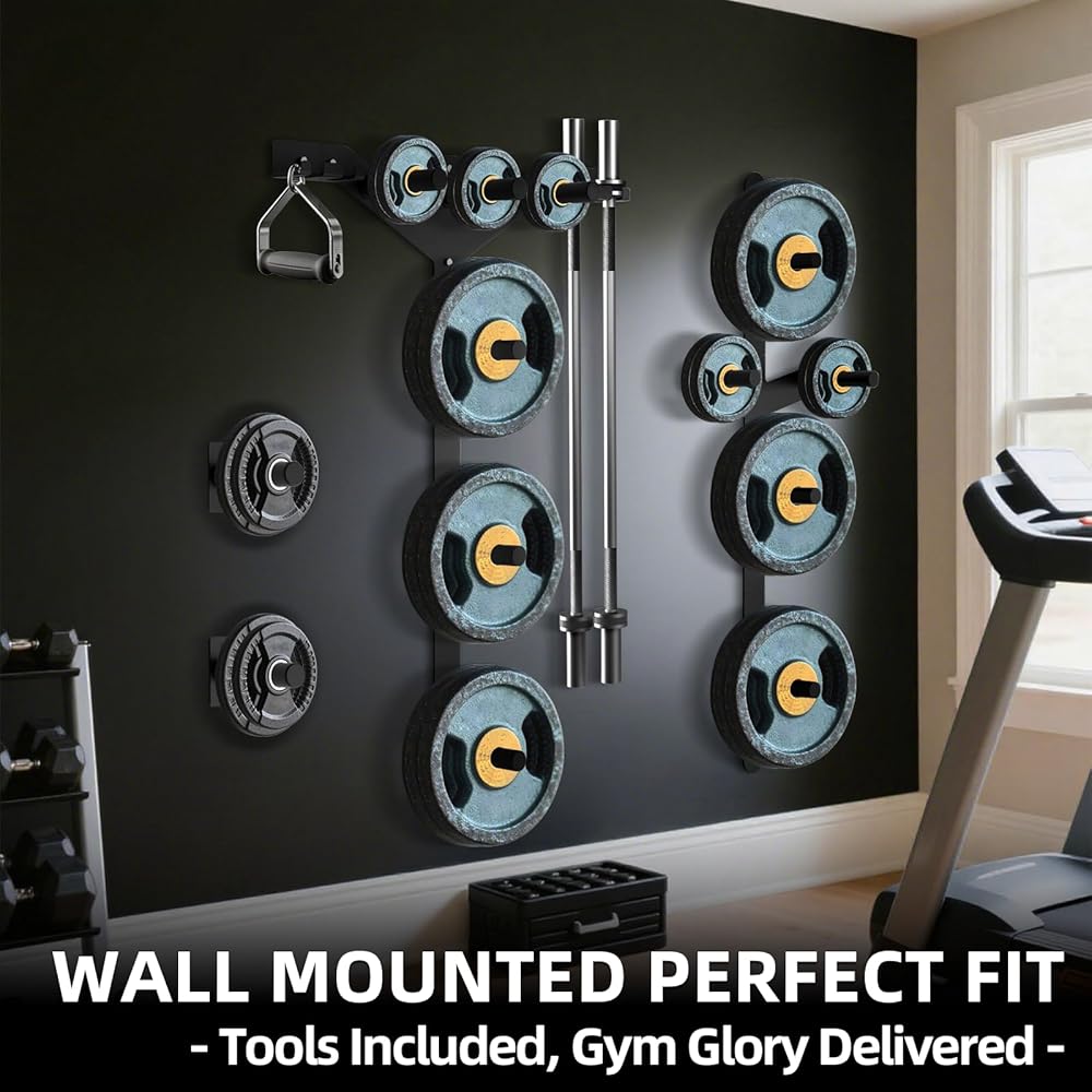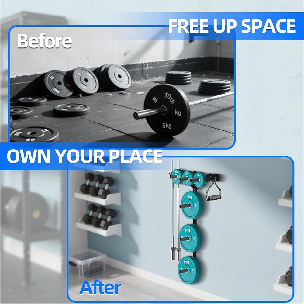🦾【الأفضل لصالة الألعاب الرياضية المنزلية】يحافظ على الحديد بعيدًا عن الأرض وعلى الحائط. وفر المساحة وتجعل منطقة الصالة الرياضية تبدو منظمة. هذه إضافة مثالية لأي شخص لديه صالة ألعاب رياضية منزلية ومساحة على الحائط