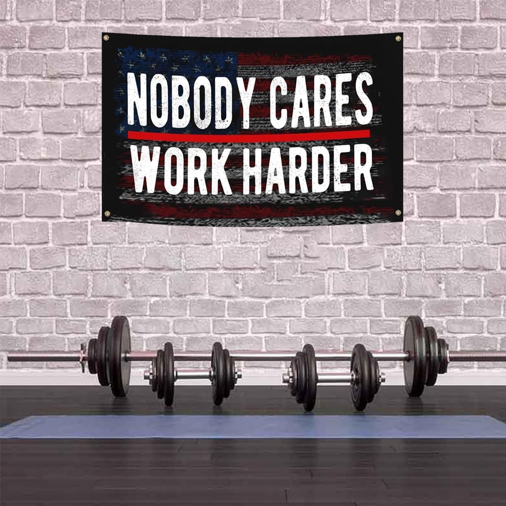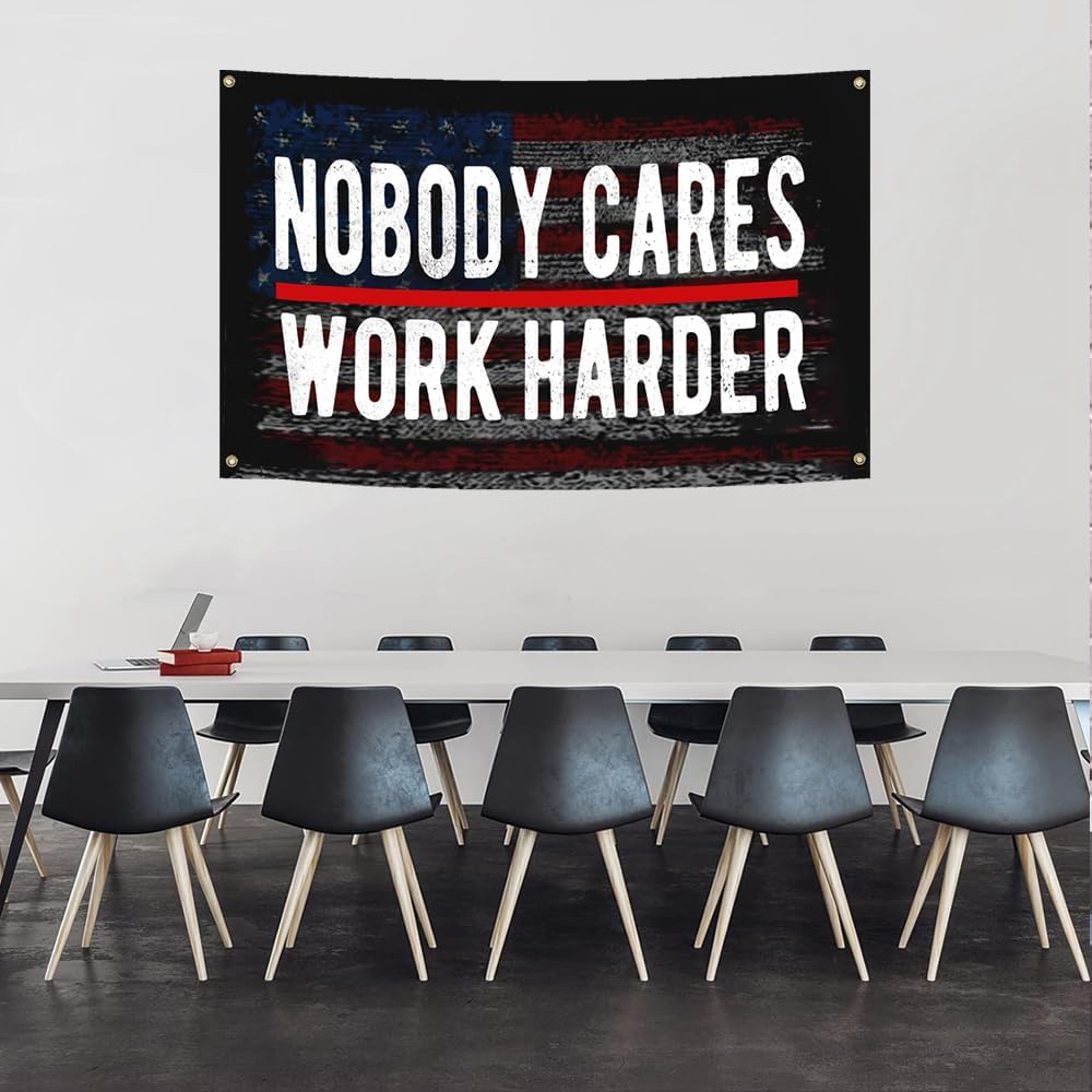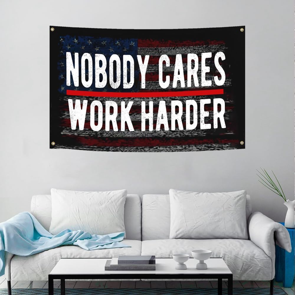 لا أحد يهتم بالعمل بجد العلم 3x5 أقدام ملصق تحفيزي لافتة ملهمة للكلية النوم الصالة الرياضية غرفة المكتب جدار ديكور