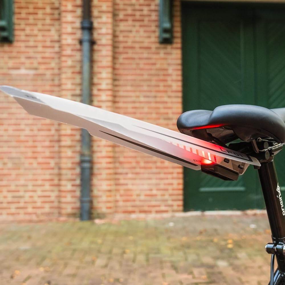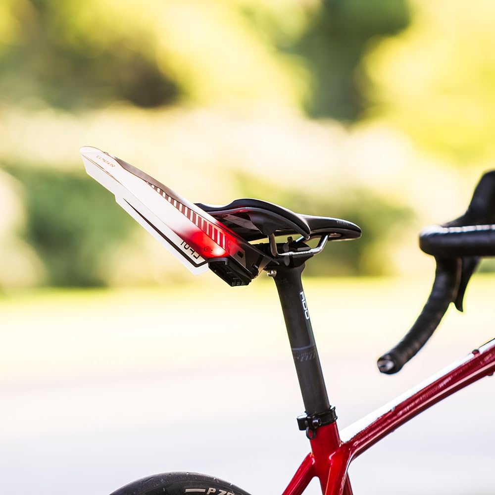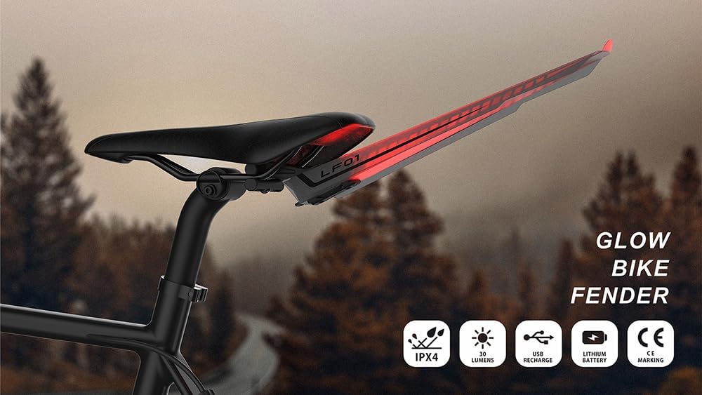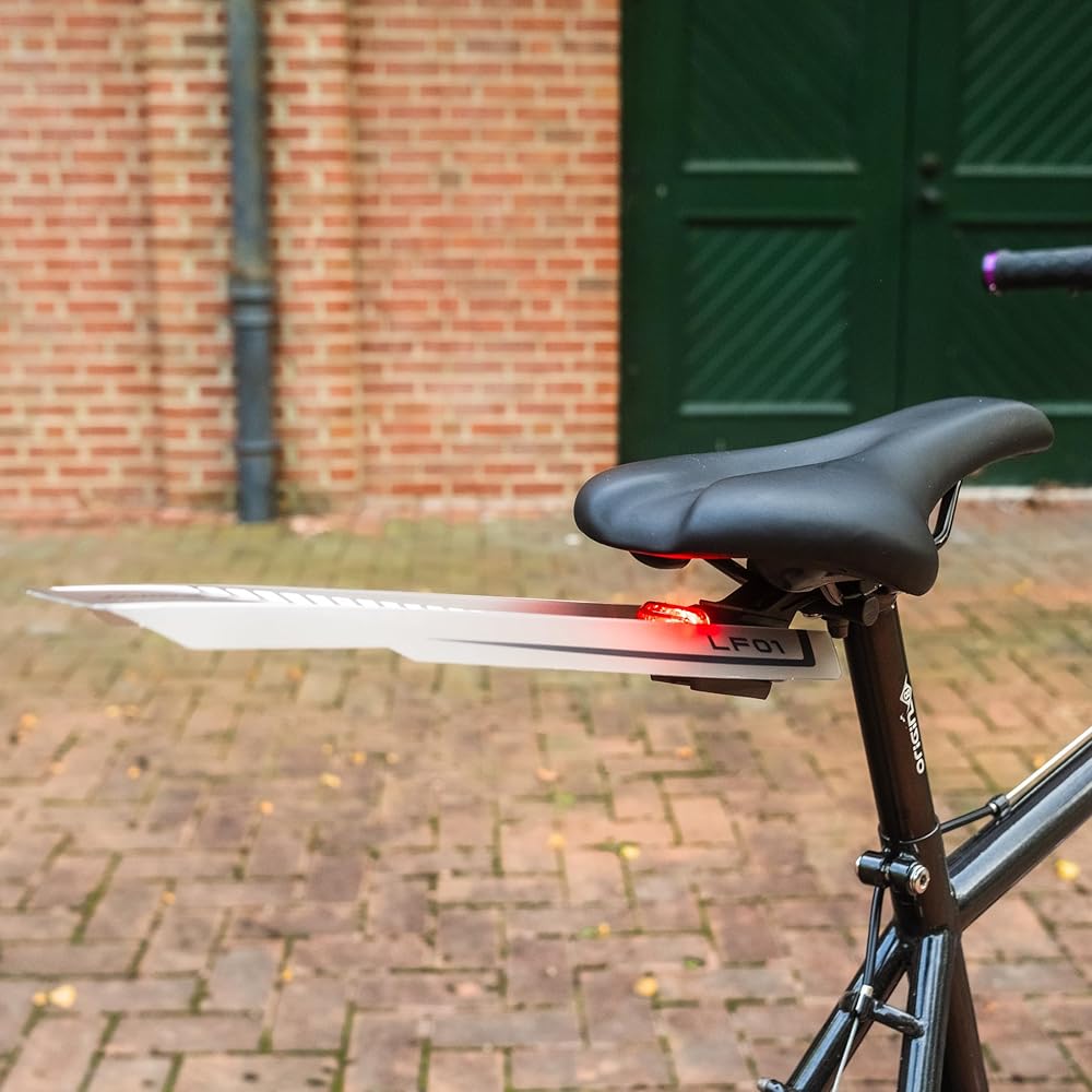 Enhance your biking experience with the Lumis Design Award-Winning Snap on Bike Fender & Tail Light Combo. Our innovative fender, constructed from durable yet lightweight polypropylene, is translucent, allowing it to transmit the bright light from the included 30 Lumens LED tail light, substantially increasing your warning area and enhancing nighttime visibility. As a commuter's best friend or ideal for a leisurely ride, this lightweight combo, weighing only 90 grams, provides long runtime, up to 8 hours in fast flash mode, and easily recharges in about 2.5 hours via the supplied Micro USB cable. The convenient bracket securely attaches to your bike's seat rails, making installation and removal a breeze with a simple click-on, click-off mechanism. Plus, the low-profile design integrates seamlessly with our LUMIS Lite-S Saddle Bag and ReadyGO Air Rocket CO2 Inflator Kit. Elevate your cycling journey and ride with confidence, knowing you have top-notch protection, visibility, and style all in one. Get ready for an outstanding biking experience with Lumis Design, featuring a splash guard bike that shields against road debris and water, a road bike splash guard for optimal protection in wet conditions, durable bicycle splash guards for all-terrain riding, a versatile bicycle fender mudguard for added defense, reliable rear fender bike protection, essential bicycle accessory components for your ride, a sturdy front bike fender for comprehensive coverage, quality bike parts for durability and performance, a practical cycle mudguard for off-road adventures, a convenient bike clip-on fender for easy attachment, sturdy mud fenders bike for rugged trails, efficient bike mud guard front and rear protection, dependable bike mud flaps for rainy days, a complete bike fenders set for comprehensive coverage, a reliable bike rain guard for all-weather protection, a sleek bike fender road bike design for style and function, and a powerful bike LED tail light for enhanced visibility.