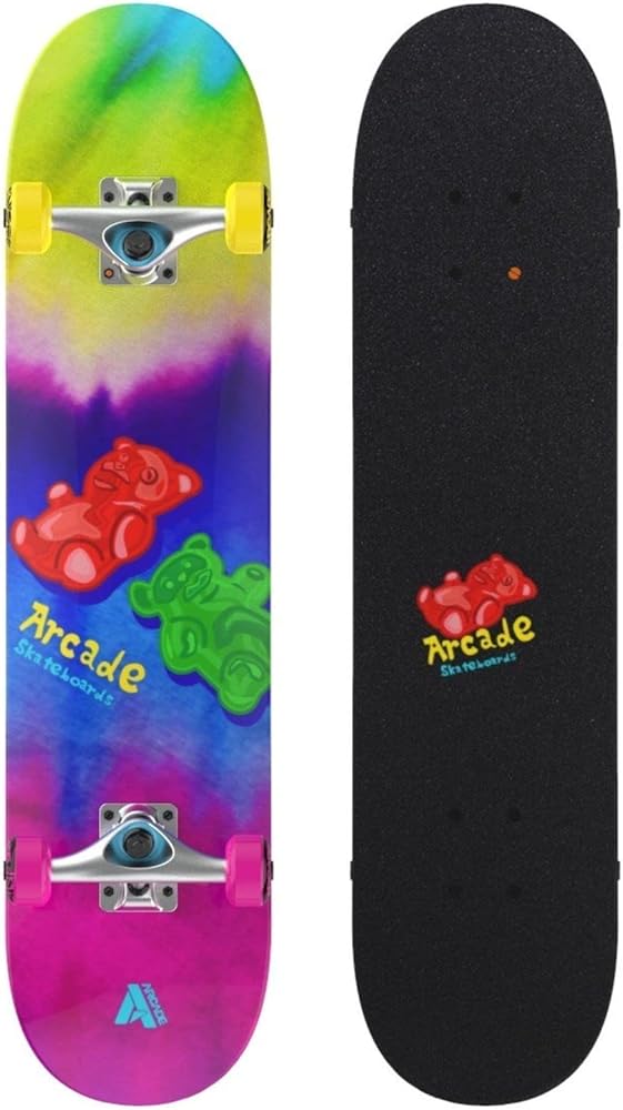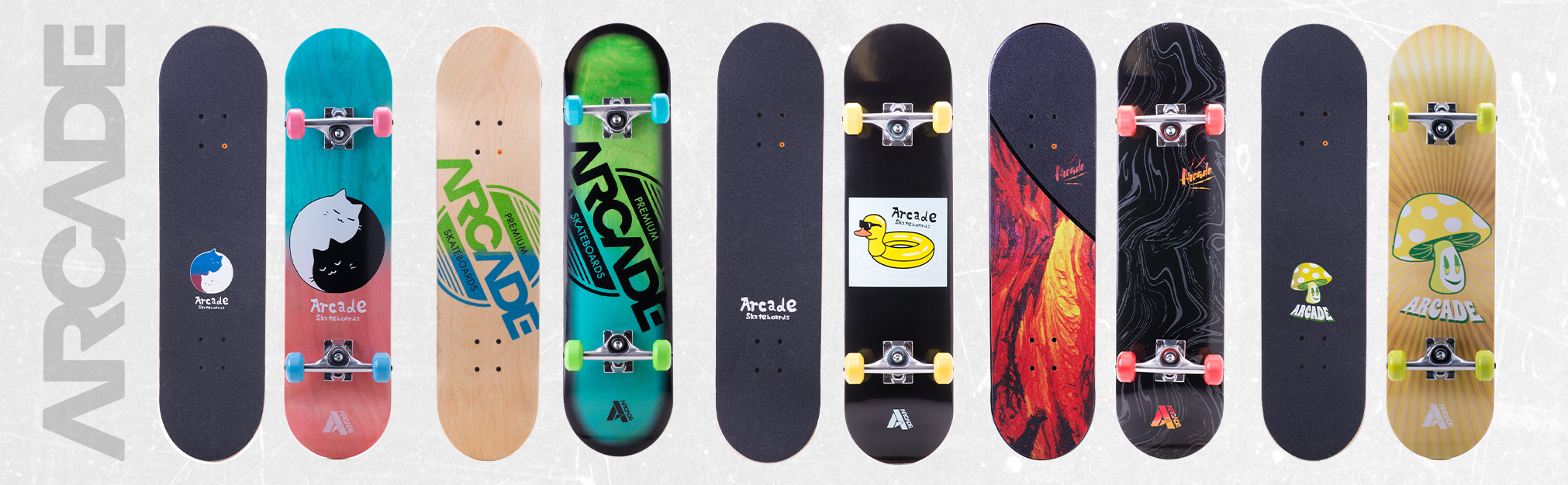 🛹 SICK COLORWAYS AND STICKER PACK! Beginner skateboards for girls and boys usually have boring graphics, but even newbs deserve a board that's lit! Arcade Pro Skate Boards come in 5x designs for all ages! Choose now, your favorite from Origin, Lava, Mushroom Dude, Ying Yang Cats or Ducky Tube! The top grip tape is stuck HARD unlike other cheap skateboards. Also comes with FREE Stickers!