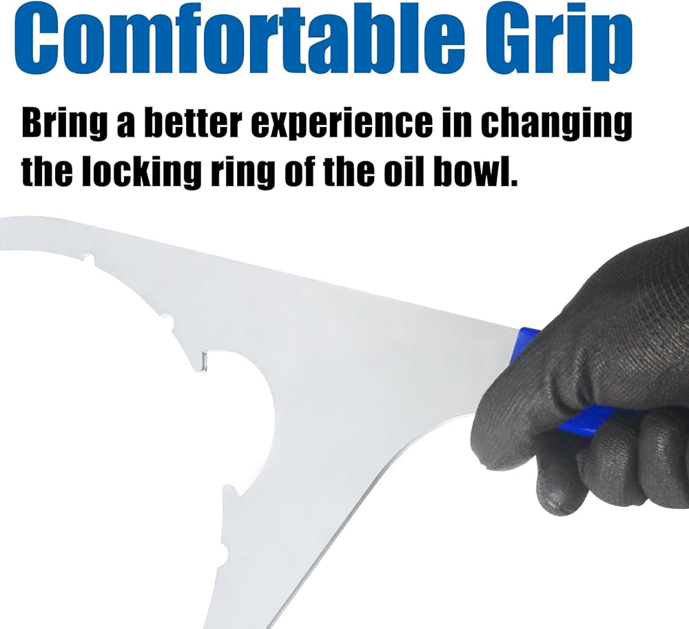 يوفر المطاط الموجود على المقبض قبضة مريحة أثناء الاستخدام. سيوفر لك هذا تجربة أفضل في تغيير حلقة القفل الخاصة بوعاء الزيت.