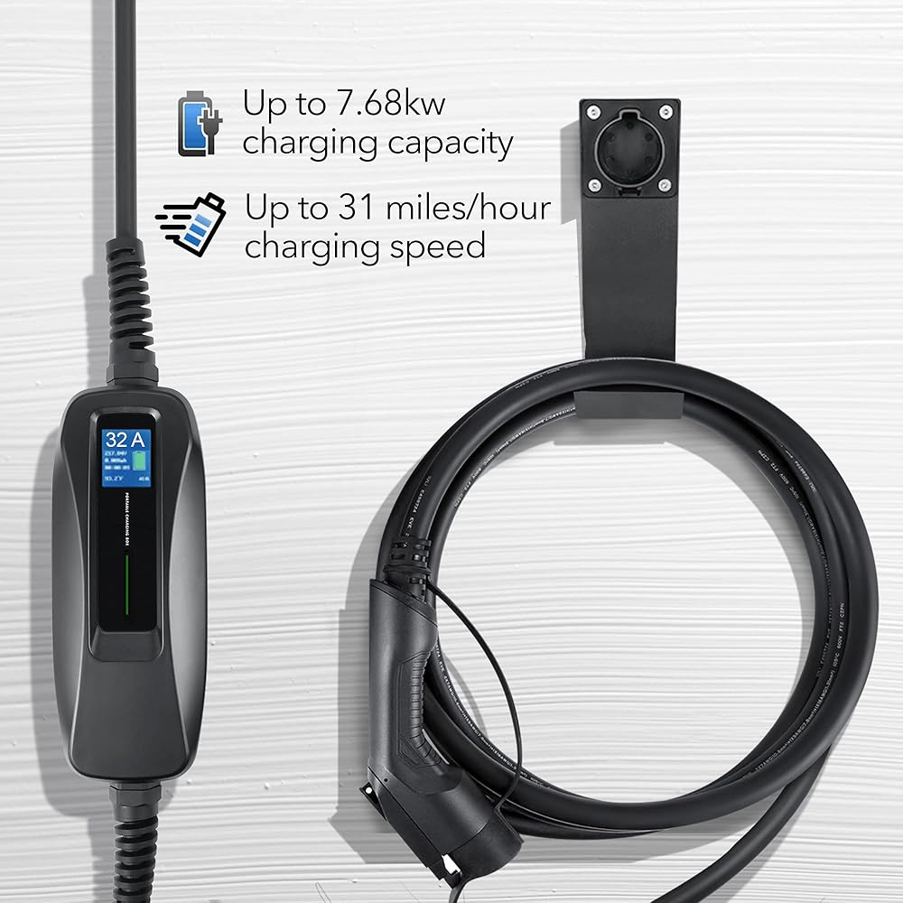 • كابل واحد يناسب الجميع - باستخدام بروتوكول الشحن القياسي J1772، يتوافق كابل الشحن هذا مع جميع السيارات الكهربائية والمركبات الهجينة. إنه مثالي للمستخدمين الذين يمتلكون أكثر من سيارة كهربائية أو مباني بها أرصفة لشحن المركبات الكهربائية.