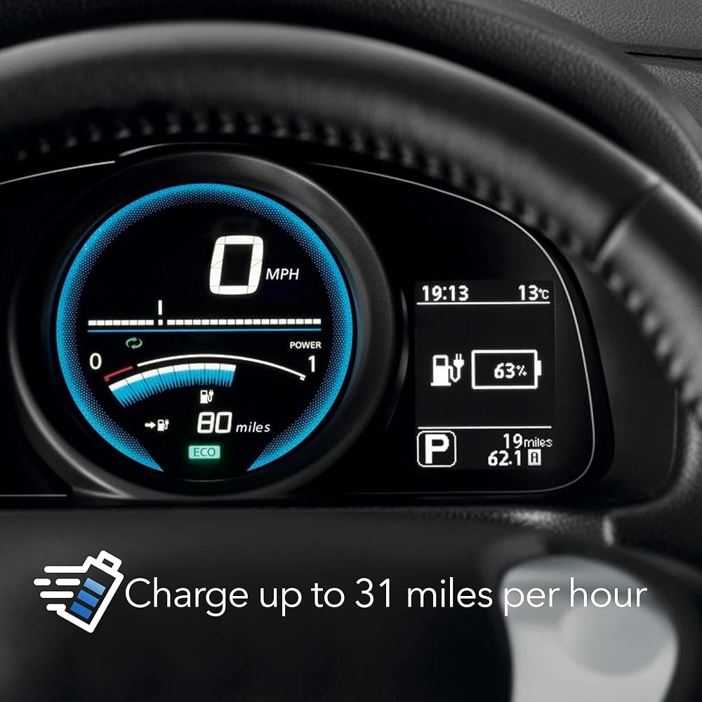 • أضواء مؤشر LED - تظهر لك أضواء مؤشر LED الموجودة على كابل الشحن مكان سيارتك عبر ثلاثة مستويات شحن مختلفة. فهو ينبهك في حالة اكتشاف خطأ، مما يسمح لك بإدارة المشكلة على الفور.