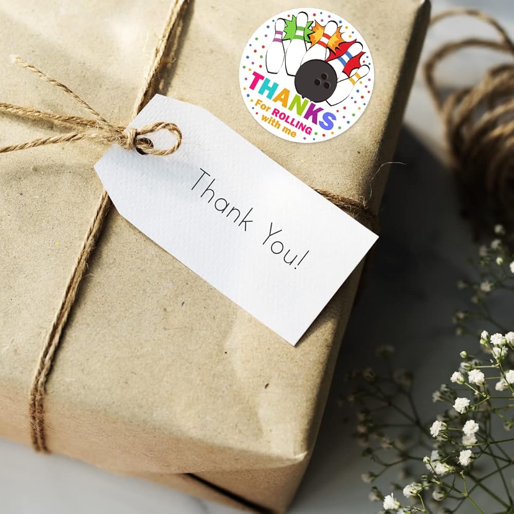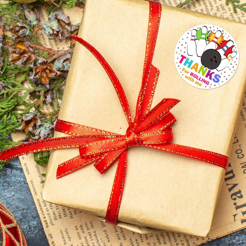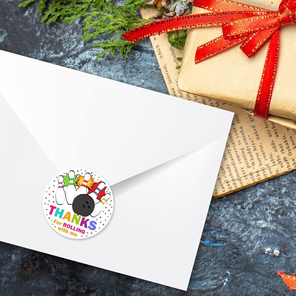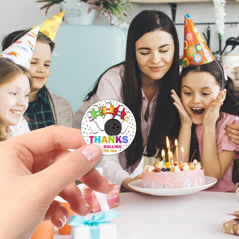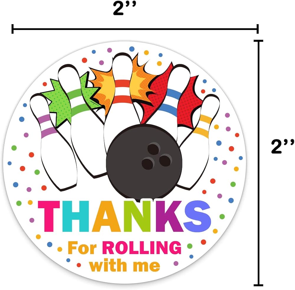 ملصقات ملصقات لحفلات البولينج شكرًا لك، ملصقات دائرية للحفلات مقاس 2 بوصة، رائعة لهدايا الحفلات، وأختام الأظرف وحقائب الهدايا الجيدة (54 قطعة)