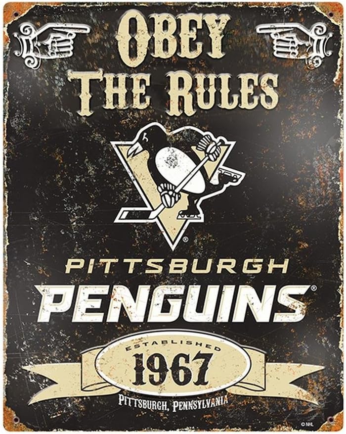 لافتة معدنية منقوشة على شكل حيوانات NHL Pittsburgh Penguins من الطرف