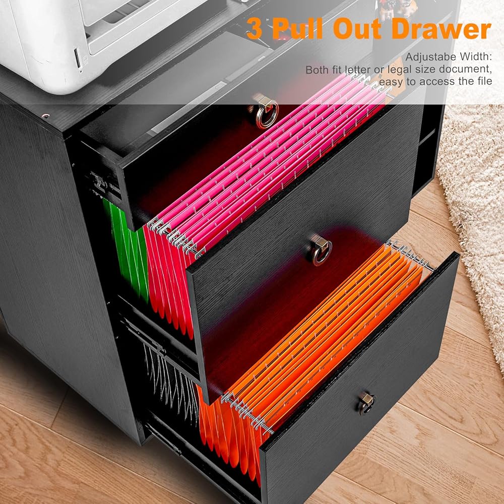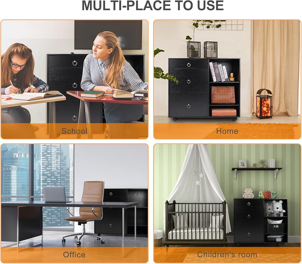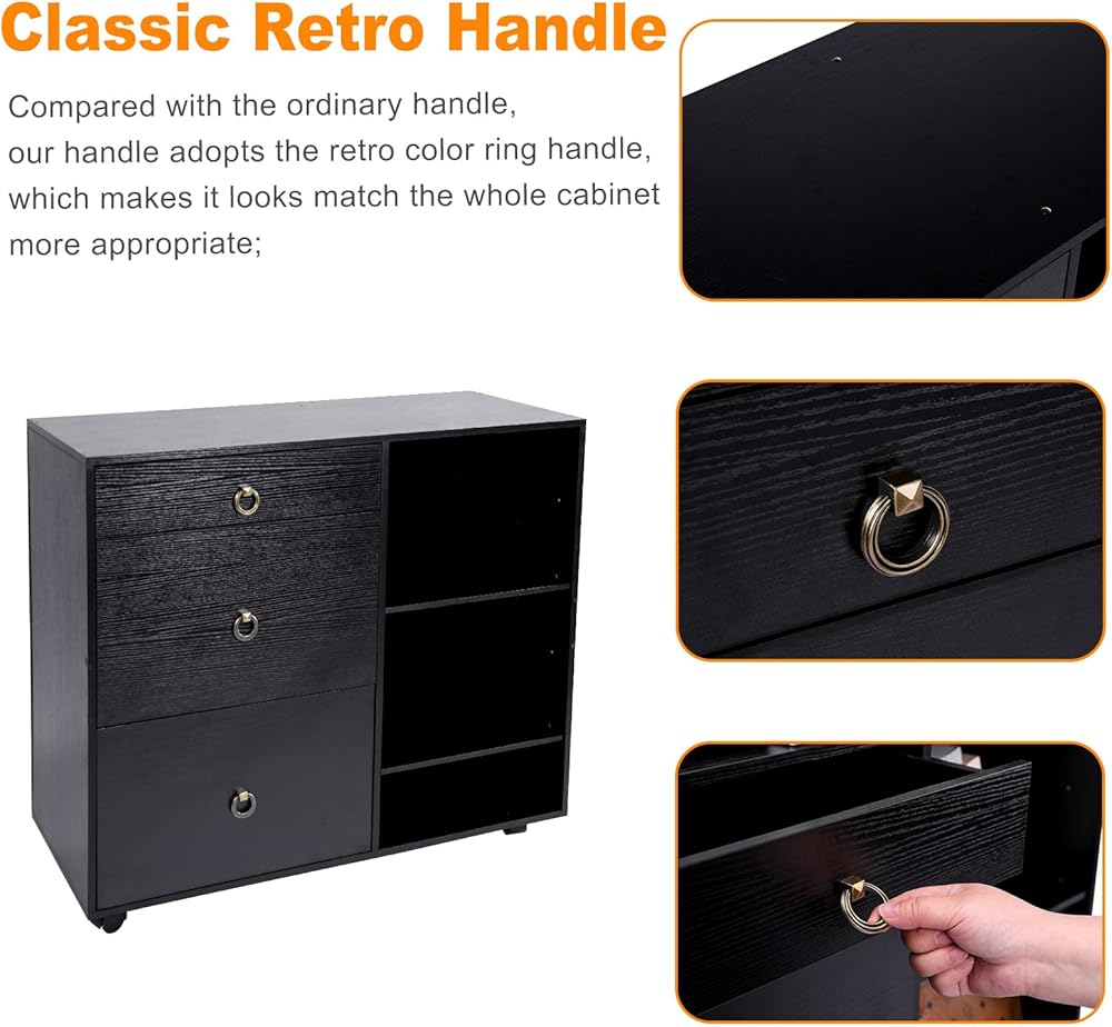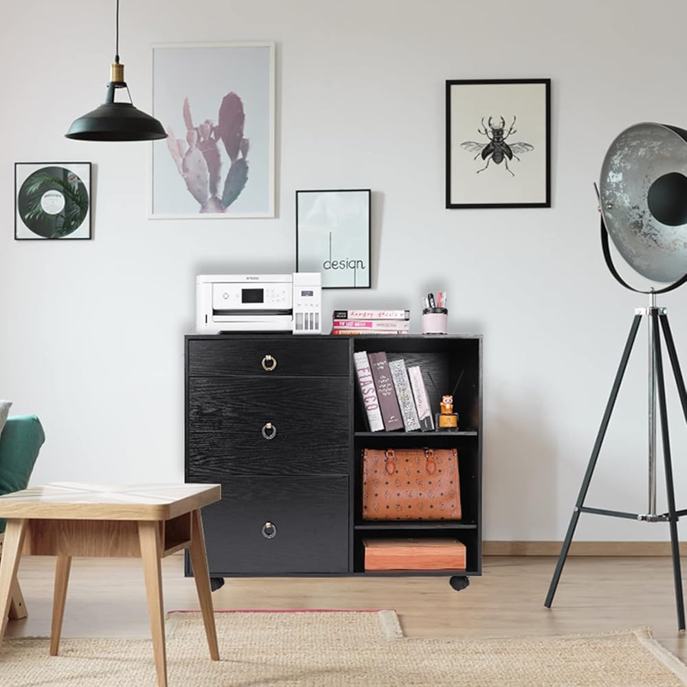 Multiple Storage Options: This filing cabinet with 2 open storage spaces shelf , 2 file drawers to keep the office machines, paper, files and suppliers organized and 1 storage cabinet for letter-size hanging file folders