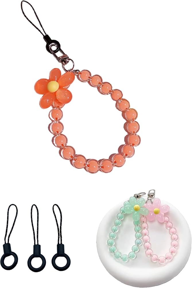 Introducing Macron's Coloured Beads Phone Charm - a set of 3 stylish and sturdy phone accessories charm that will add a touch of elegance to your mobile phone, camera, school bag, keychain, and more! These pink, orange, and green phone charm strap come with a large petal, beaded chain, and lanyard that are not only aesthetic but also handy and helpful. Made with great quality materials, the color hasn't faded at all and these phone strap charms are still just as shiny and solid. These cute phone charms are easy to put on and attach, making them a great addition to any cute phone case style. You can also use them as a phone bracelet or phone beaded wrist strap. The possibilities are endless with these cute and kawaii phone charm strap that are perfect for daily use. These cell phone charms make a fantastic gift for your friends or family, wife, girlfriend, daughter, etc.Get yours now and show off your style!