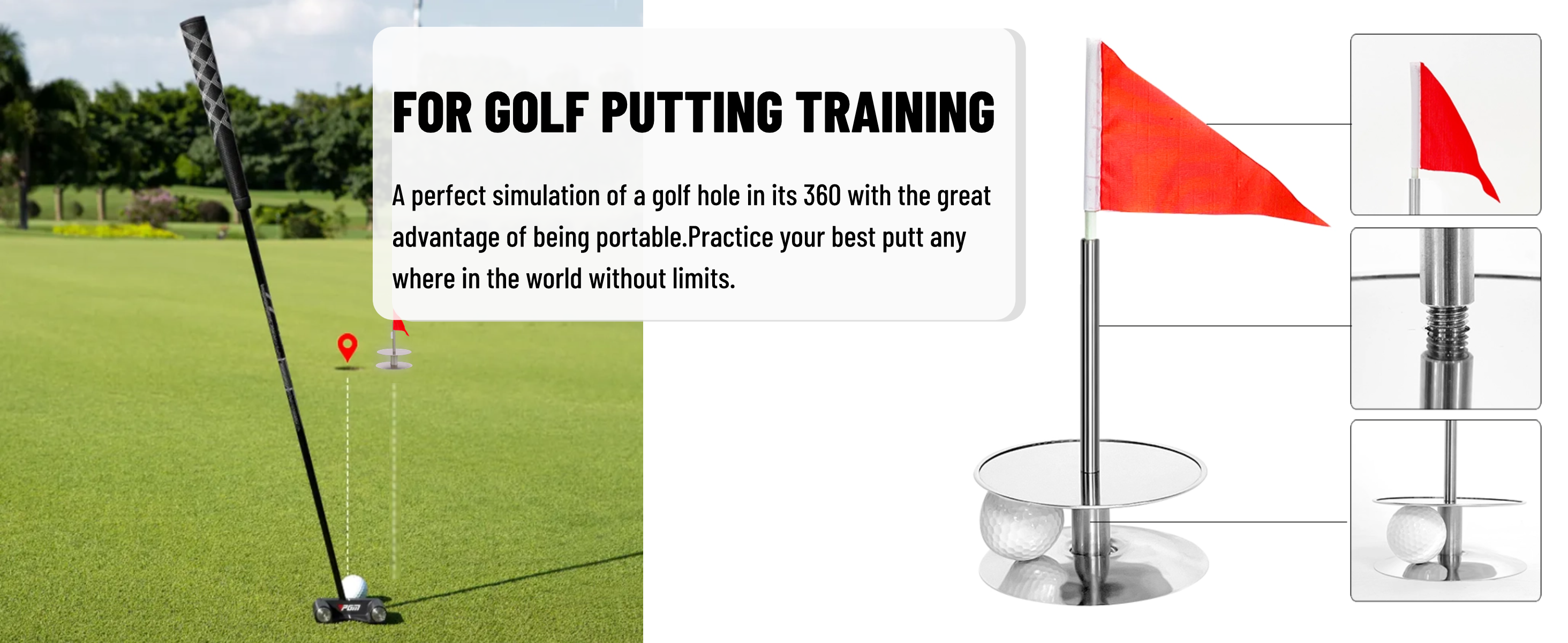 【تجربة حقيقية للعب الجولف】بفضل هذا التصميم الثوري، ستأخذ فتحة وضع الجولف الخاصة بنا ممارسة التمارين الخضراء إلى المستوى التالي! تم تصميم كوب ثقب المضرب المحمول الخاص بنا ليتفاعل مع المضرب كثقب جولف حقيقي لمزيد من الدقة والدقة.