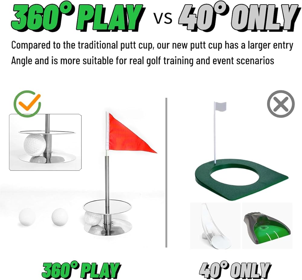 【تصميم جديد لتدريبات الجولف】مع كوب JevenFening ذو فتحة 360 درجة، يمكنك تحسين مضرب الجولف الخاص بك دون الحاجة إلى أن تكون في ملعب جولف حقيقي! يمكن أن تساعد هذه الفتحة الخضراء في تعزيز فعالية ممارستك من خلال تقديم تجربة واقعية، سواء كنت في الداخل أو الخارج.