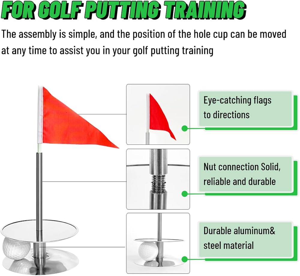 【مواد عالية الجودة】تتميز الفتحة الخضراء للتدريب على الجولف ببنية متينة مصنوعة من الفولاذ المقاوم للصدأ عالي الجودة وقاعدة من الألومنيوم تضمن المزيد من الثبات على أي نوع من التضاريس.