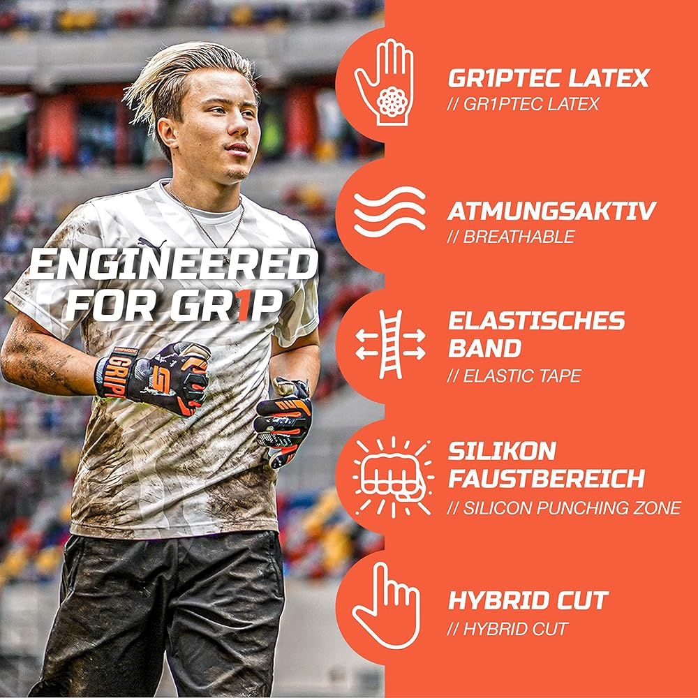 Gripmode Gravity Hybrid Hybrid Hybrid Gloves Adult and Child with Griptec® LaTex بطانة مناسبة في جميع حماية أهداف كرة القدم للأطفال والمراهقين والبالغين أنا حجم 7-11