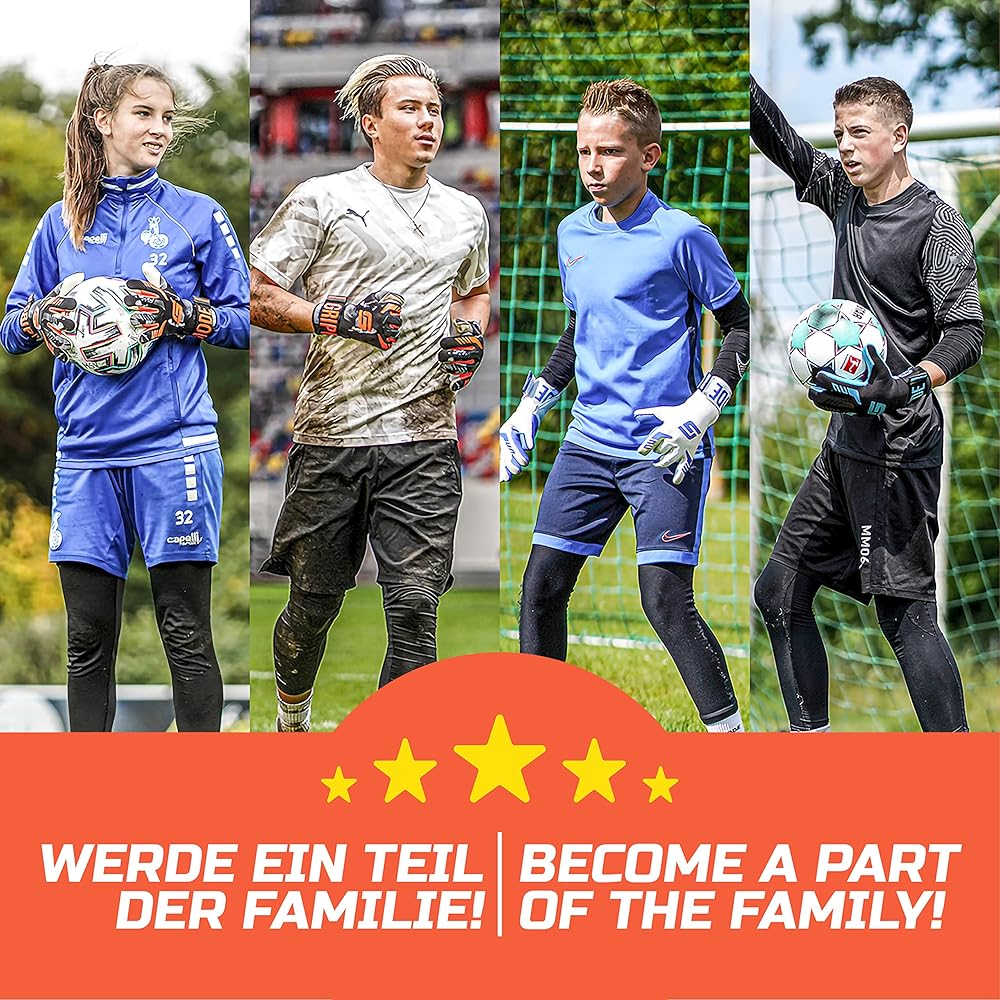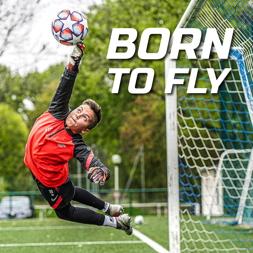 BORN TO FLY: Take your goalkeeping game to the next level! Our professional goal keeper gloves for kids and adults, made of comfortable and breathable neoprene, provide a great feeling of security and first-class comfort.