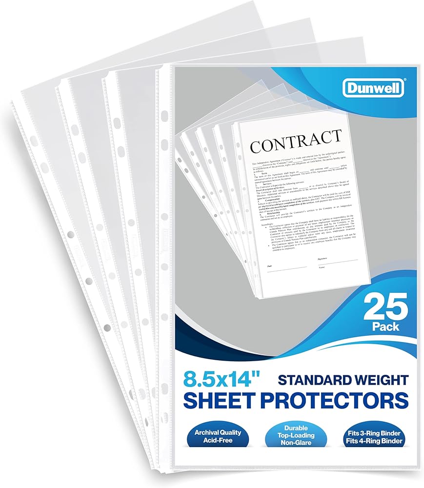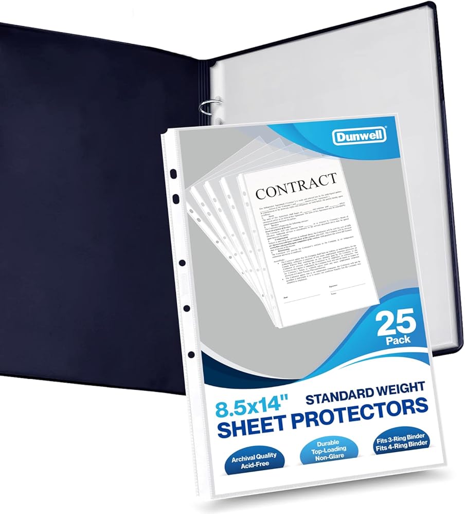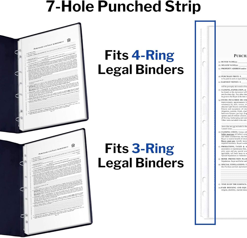 25 واقيًا للمستندات القانونية: أكمام حماية بلاستيكية شفافة بحجم قانوني 8.5 × 14، واقيات قياسية للصفحات ذات التحميل العلوي للورق القانوني، 7 فتحات مثقوبة للموثق القانوني ذي 3 حلقات، والموثق القانوني ذو 4 حلقات.