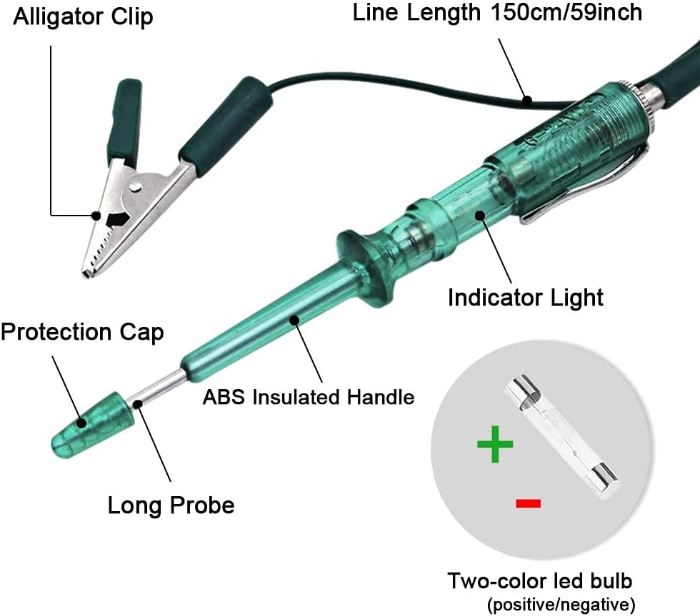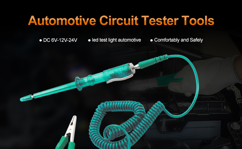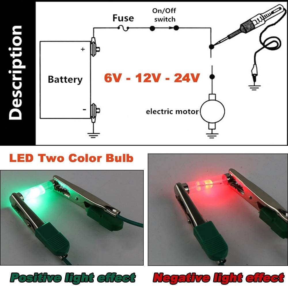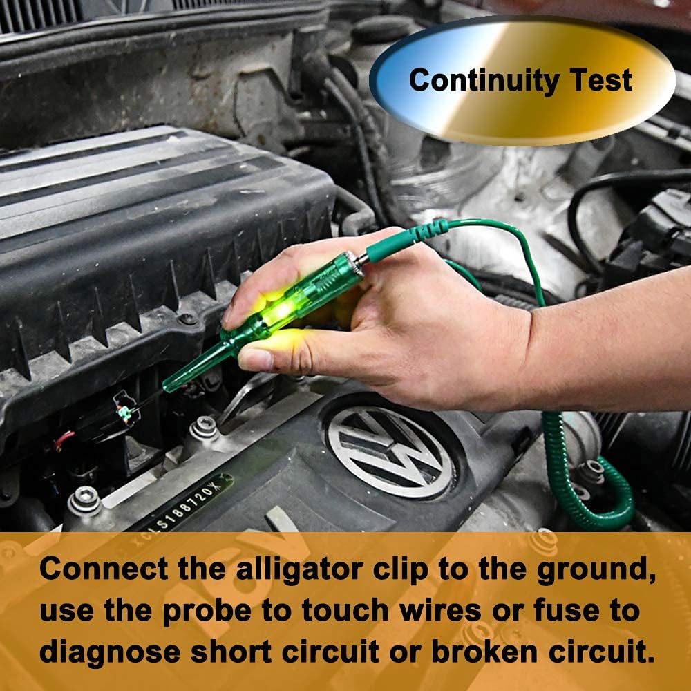 جهاز اختبار دائرة السيارات - جهاز اختبار التيار 6 فولت - 24 فولت، جهاز اختبار دائرة احترافي للسيارات مع ضوء مؤشر، مسبار طويل مع مشبك تمساح لاستمرارية جهد السيارة، لسيارة السيدان، وسيارات الدفع الرباعي، والمركبات الترفيهية، والشاحنات