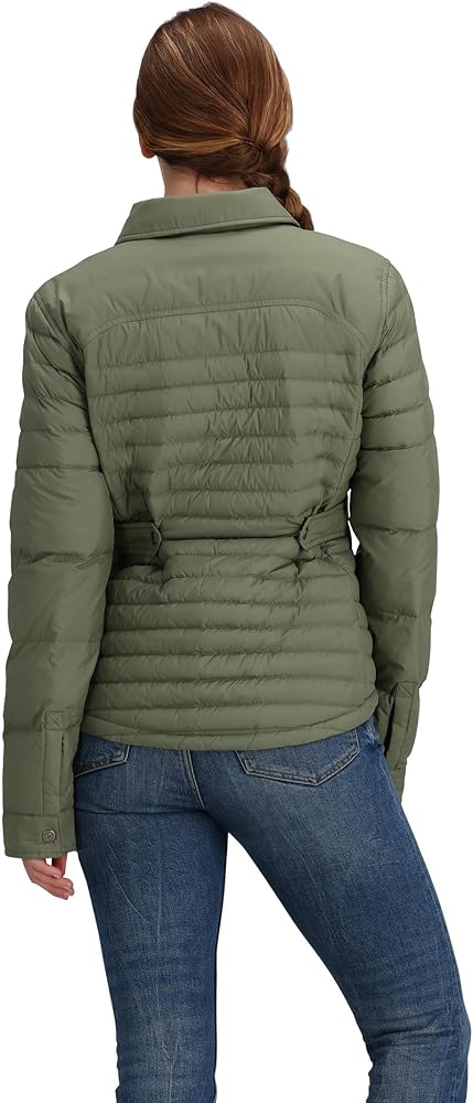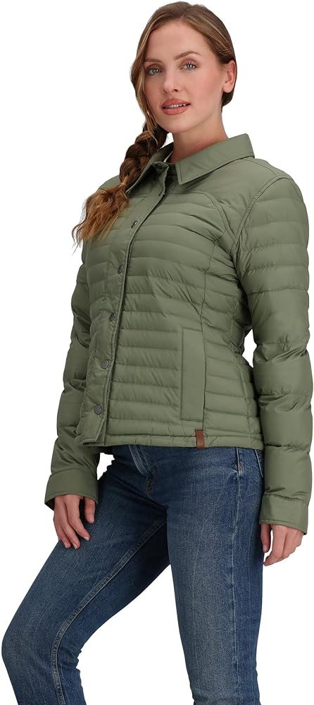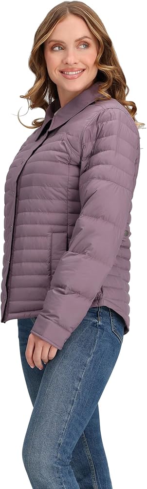 Get wrapped in the cloudy comfort of superior warmth wearing the Obermeyer Willa Down Shirt. Featuring an allover quilted construction, the puffer jacket has a spread collar with long sleeves and snap-button front closure. Relaxed fit. Responsibly sourced 550 fill power Allied Feather + Down insulation. Weatherproof and breathable DWR coating. Interior stash pockets. Side zippered hand pockets. Fabric: HydroBlock Classic 100% polyester plain weave. Hand wash.