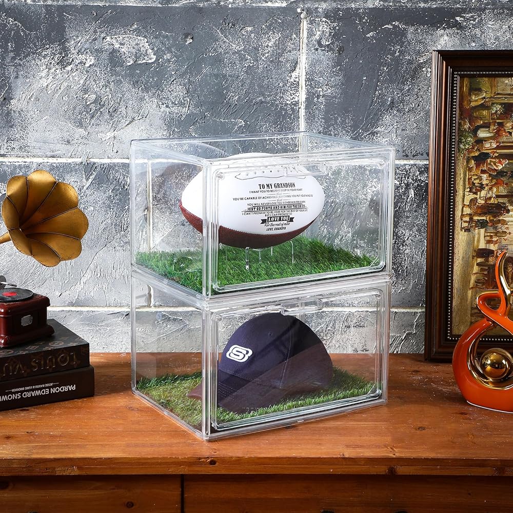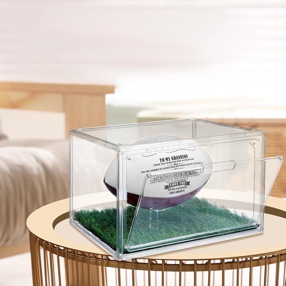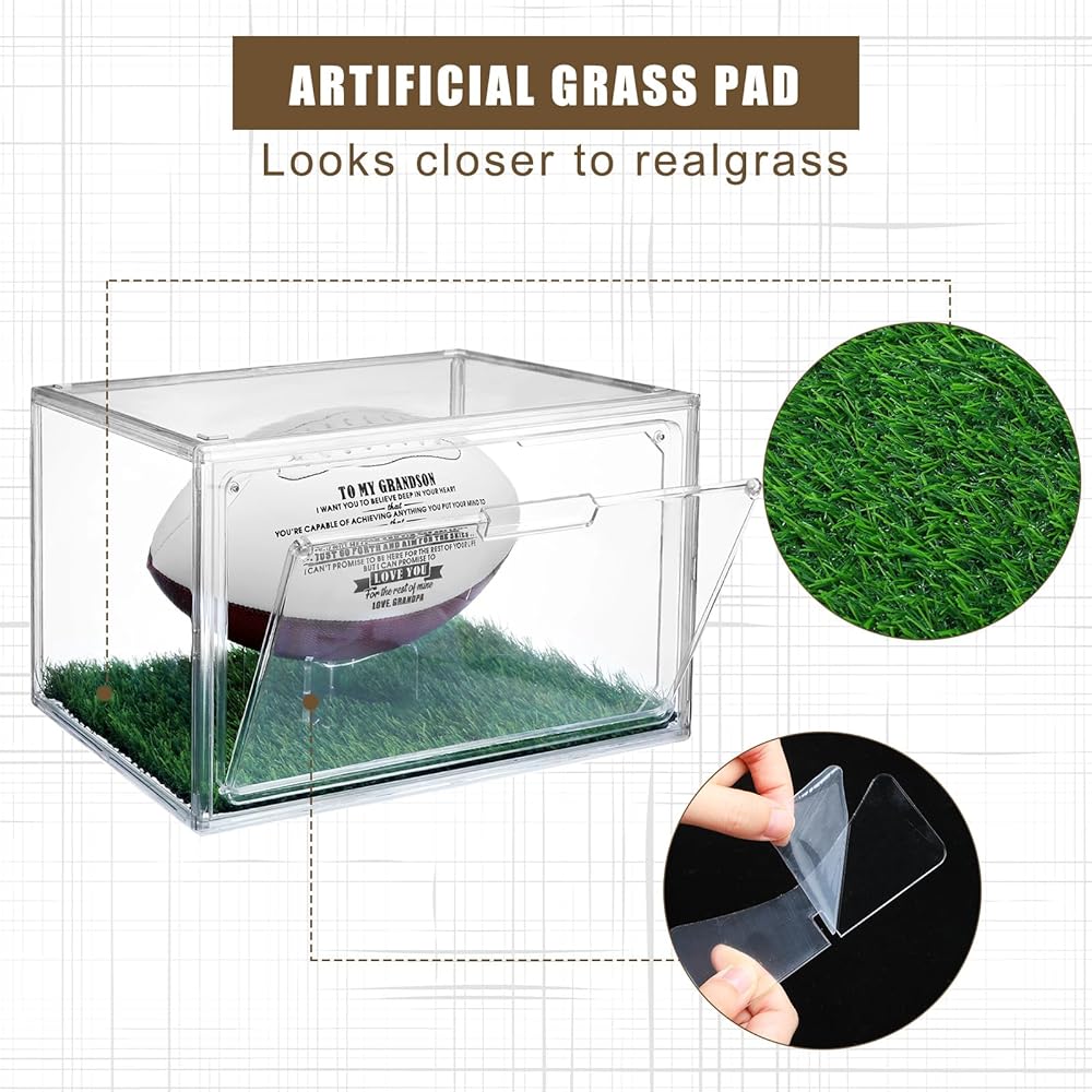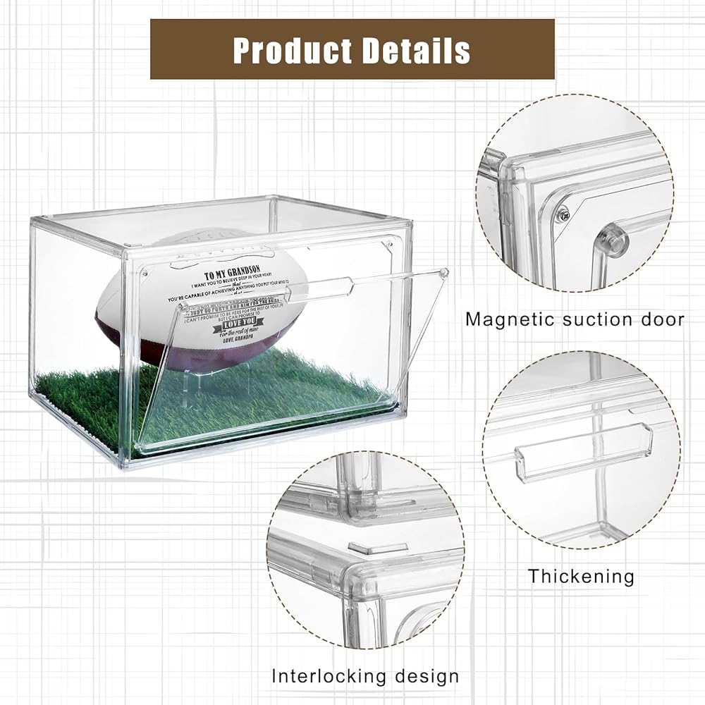• Ideal Gifts: whether you're a football fan or know someone who is, this football display case package, which includes 2 cases, 2 artificial grass pads and 2 display stands, makes a thoughtful gift; It's more than a display case; It's a treasure chest for precious memories of your favorite games and players; Please note that football is not included in the package