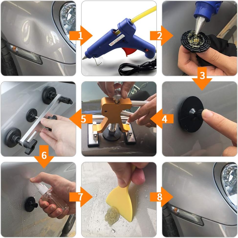 ✅【متعددة الوظائف】مجموعة إصلاح الانبعاجات بدون طلاء هذه مناسبة لأي خدوش سيارات وإصلاح صدمات الأبواب وأضرار البرد والخدوش الأخرى. فعال وآمن في إزالة الخدوش وإصلاح قرع الباب وأضرار البرد على السطح المعدني، مثل السيارات والدراجات النارية والثلاجة والغسالة وما إلى ذلك. لا يوجد ضرر على الطلاء الأصلي.