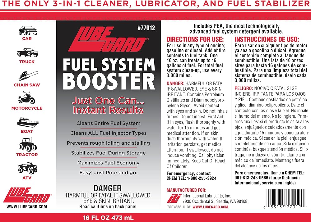 - يحتوي على تقنية منظفات بولي إيثر أمين (PEA) فريدة من نوعها، وهي الكيمياء الأكثر فعالية للتنظيف الشامل لنظام الوقود الذي يتفوق على المنافسين