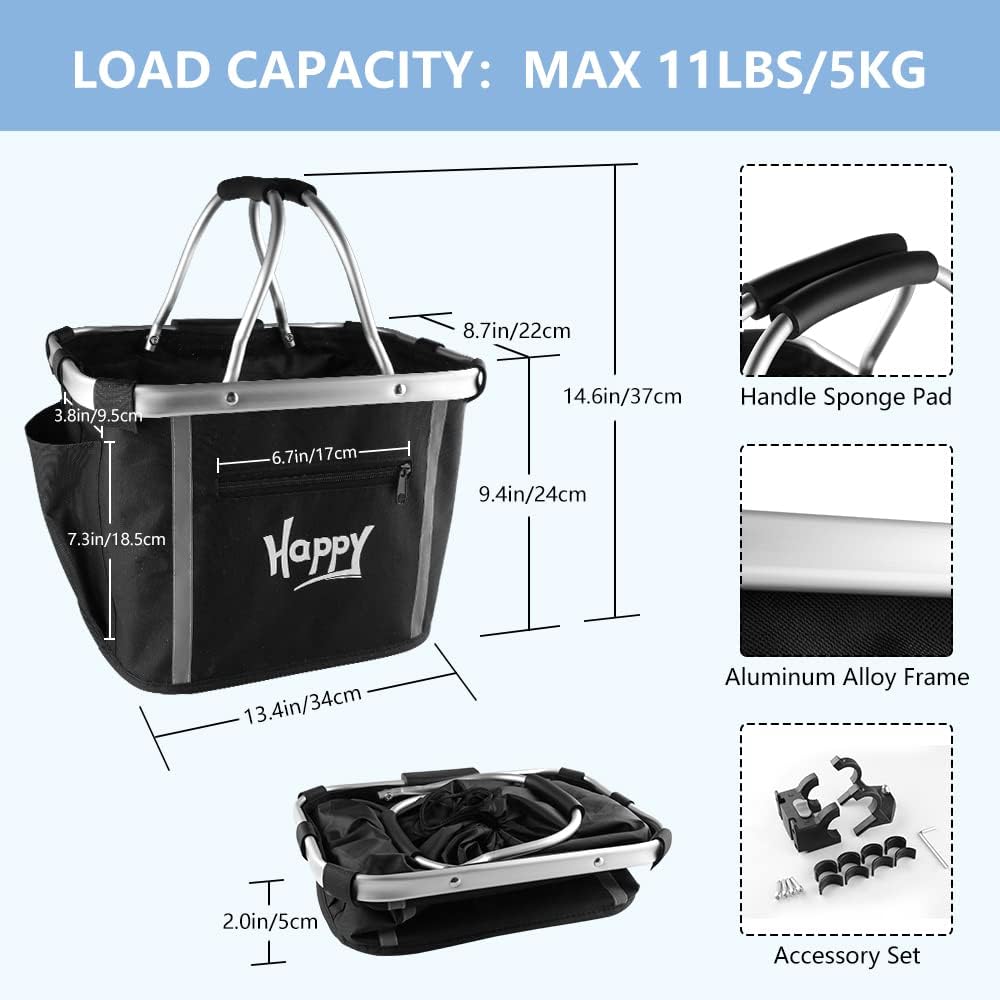 [جودة ممتازة] قماش أكسفورد عالي الجودة، مقاوم للماء وسهل التنظيف. إطار من سبائك الألومنيوم خفيف الوزن للغاية يجعل السلة أكثر متانة. تتمتع لوحة الحشو المدمجة عالية القوة في الأسفل بدعم قوي حتى لا تتشوه السلة بسهولة وتكون قادرة على حمل المزيد من العناصر.