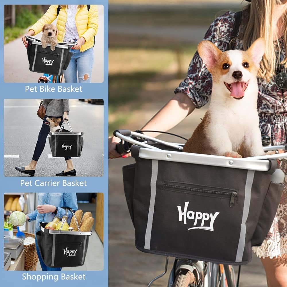 [جيوب متعددة وقابلة للطي] جيب أمامي بسحاب للمفاتيح والبطاقات وغيرها من الأشياء الصغيرة. كما أنها مصممة بجيوب على كلا الجانبين لزجاجات المياه أو المظلات، إلخ. سلة الدراجة SMONTER قابلة للطي بحيث يمكنك تخزينها بسهولة في صندوق السيارة أو المساحات الصغيرة الأخرى.
