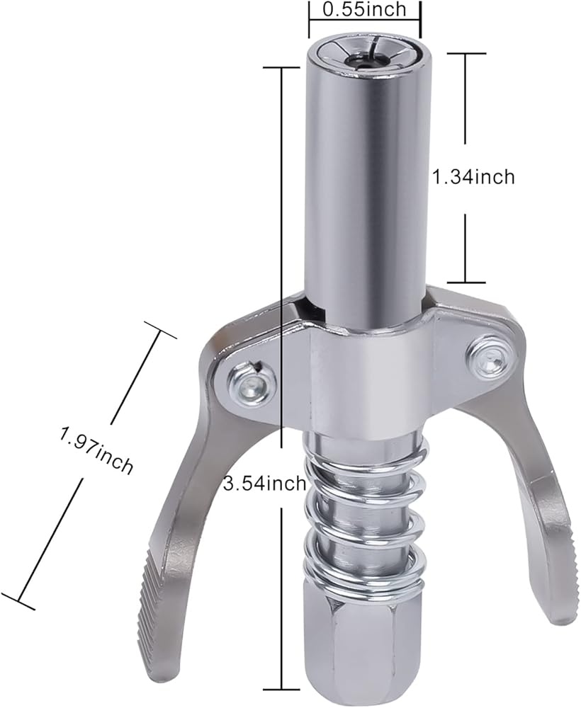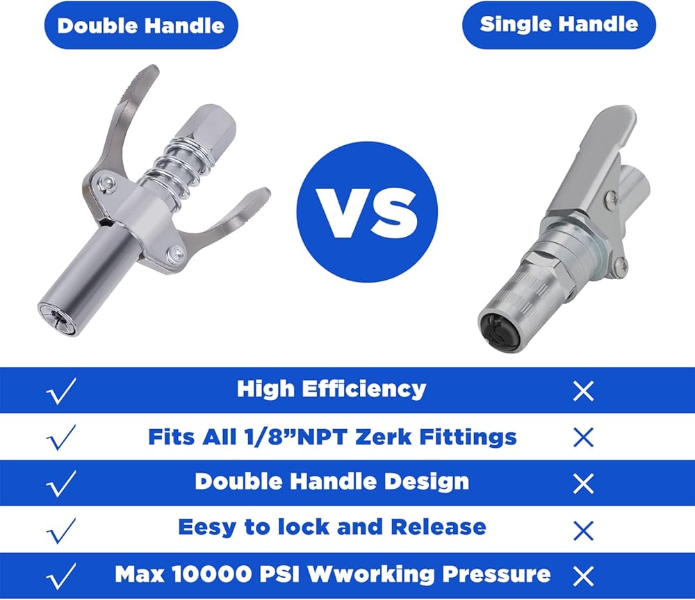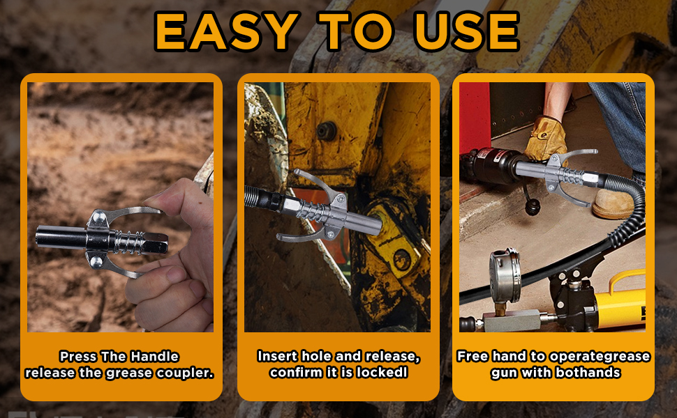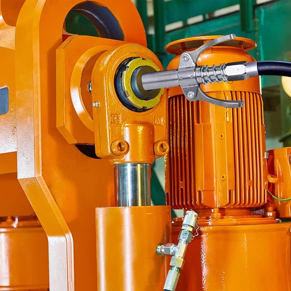【سهلة التشغيل بيد واحدة】وصلة مسدس الشحوم مع آلية سحب سلسة، وترقيتها إلى مقبض مزدوج. يمكن تشغيلها بيد واحدة. بعد الترقية الجديدة، أصبح الأمر أكثر توفيرًا للعمالة. لا حاجة للإمساك أثناء التشحيم، بعد قفل وصلة مسدس الشحوم، يمكنك تحرير يديك لتشغيل مسدس الشحوم.