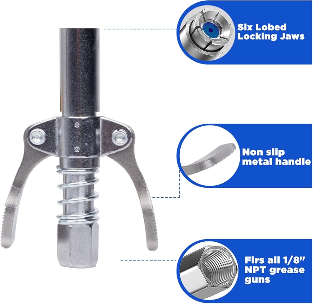 【القفل والختم】ترقية قارنة مسدس الشحوم الخاصة بنا إلى فكي قفل بستة فصوص وحشية إغلاق عالية الجودة، قوية بما يكفي لقفل الزرك ومنع التسرب، ومنع التسرب حتى عند الضغط الشديد 12000 رطل لكل بوصة مربعة.