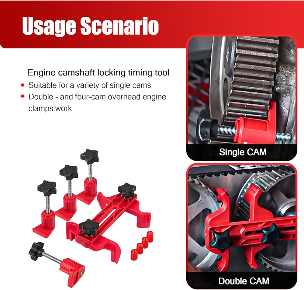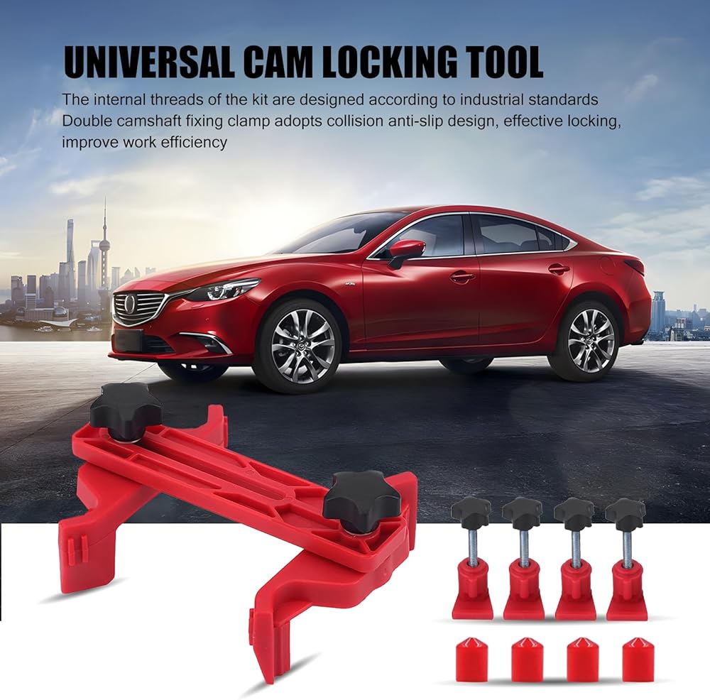 Slykew 9 PCS Car Engine Gear Locking Tool Kit, Waterproof Durable Vehicle Cam Gear Clamp Accessories, Universal Anti-slip Automotive Dual Camshaft Clamp Replacement for Truck SUV Car (Red)