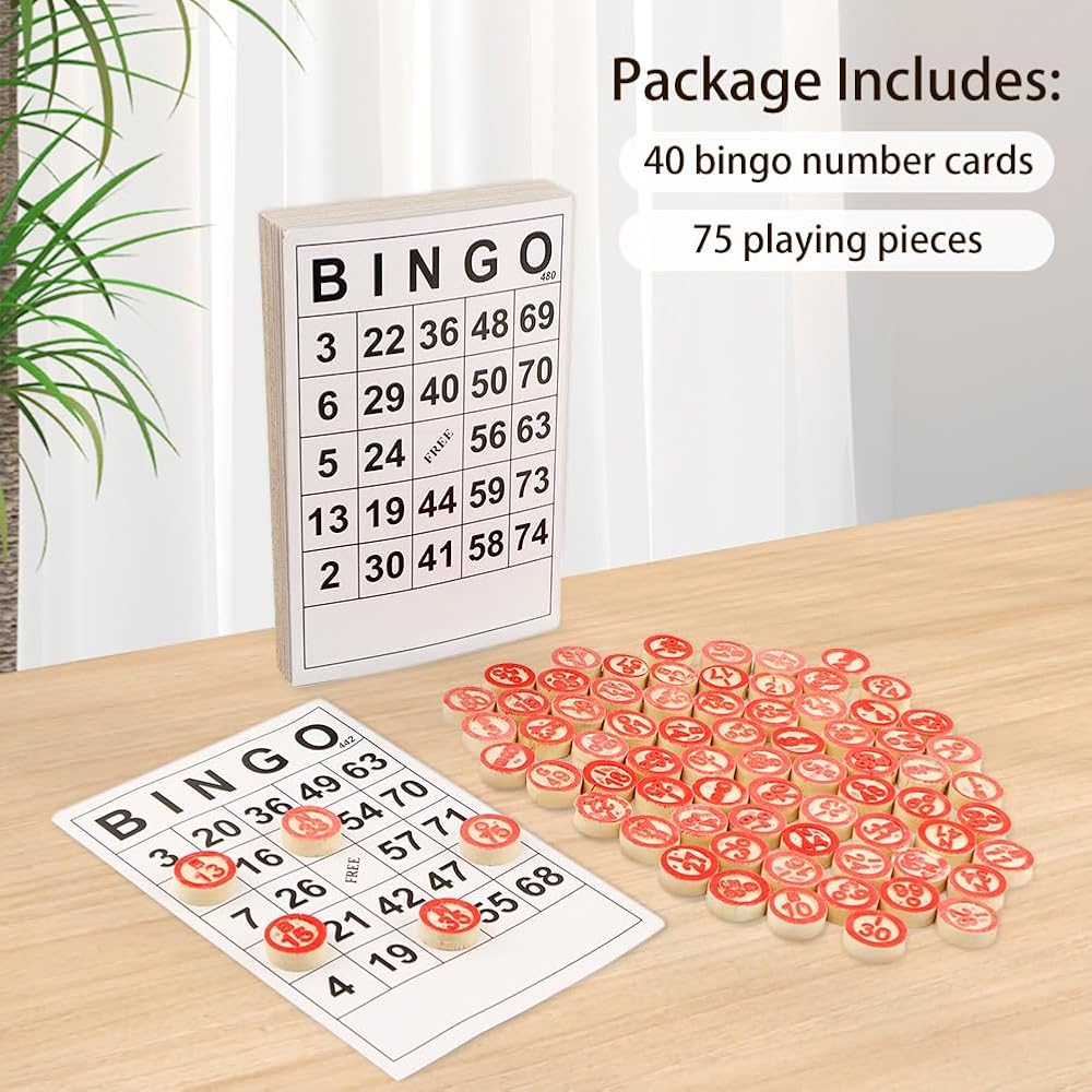تتضمن الحزمة: تتضمن مجموعة البنغو الخاصة بنا 40 بطاقة أرقام بنغو و75 قطعة لعب.