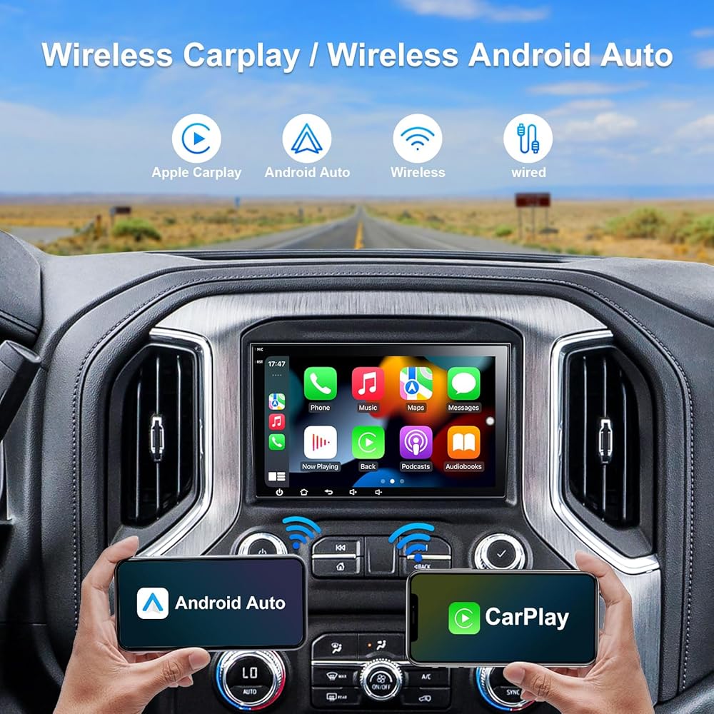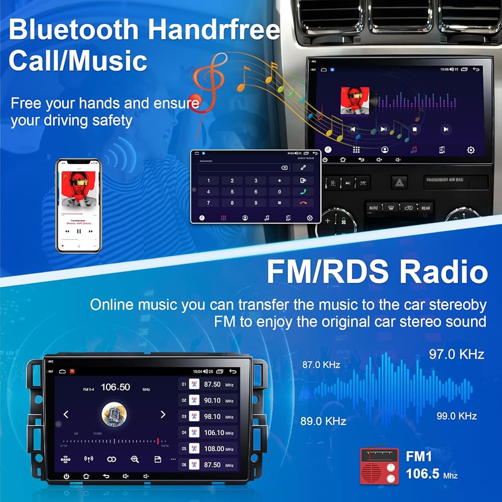 🚗【Wireless CarPlay and Wireless Android Auto with Voice Control]: Android car stereo for GMC/Chevrolet/BUICK supports wireless& wired CarPlay and Android Auto.No need USB cable. With latest voice control technology, 2008 chevy silverado radio allows you to wake up voice Assistant Siri/Google to make phone calls, access music, send and receive messages, gps navigation and more.】